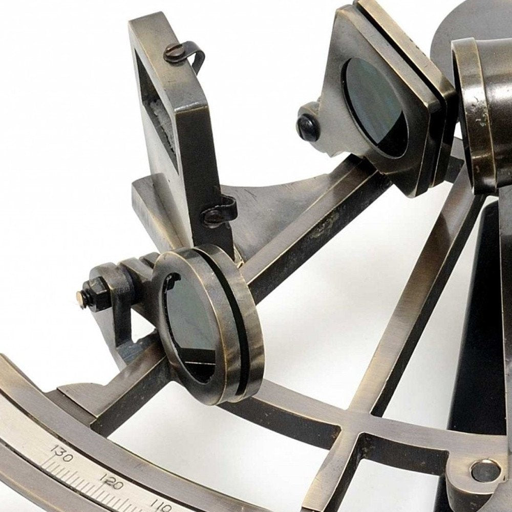 This is a fully functional nautical sextant. It is made of high quality brass. Each component is crafted with the finest craftsmanship. Available in antique brass finish and it comes in a beautiful rosewood gift box. This sextant is a great addition to any nautical collection. The item dimensions are: L: 8 inches, W: 8.5 inches, H: 4.5 inches.