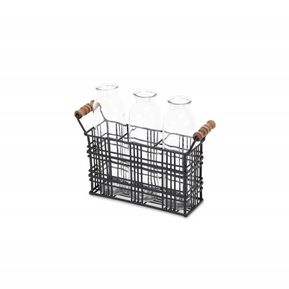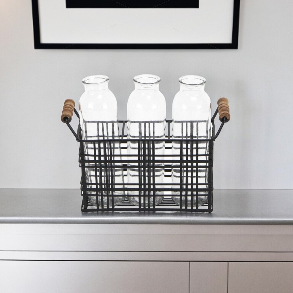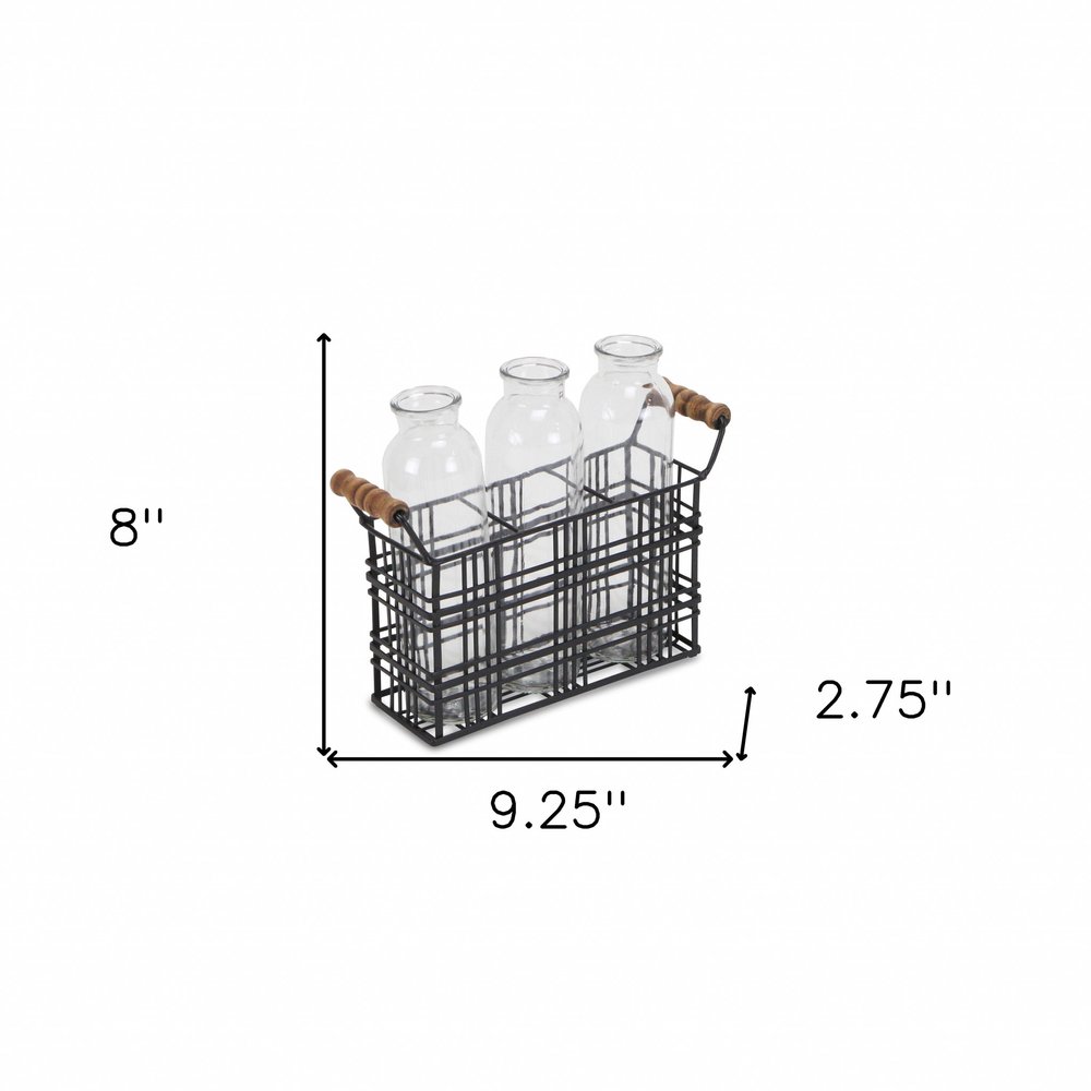 8" Black Glass Decorative Bottle Tabletop Sculpture