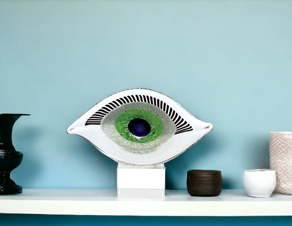 8" Clear Blue and Green Murano Glass Modern Abstract Tabletop Sculpture