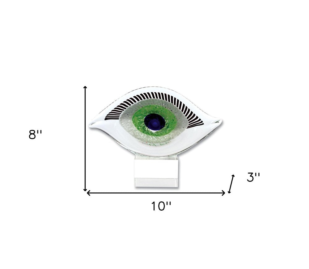 This 8-inch clear blue and green murano glass modern abstract tabletop sculpture will add a beautiful decorative accent to your decor. This clear blue and green colored piece is made from high grade murano glass. It's a perfect addition for those who love an up-to-the-minute look and feel. 8-inch H x 3-inch W x 10-inch D