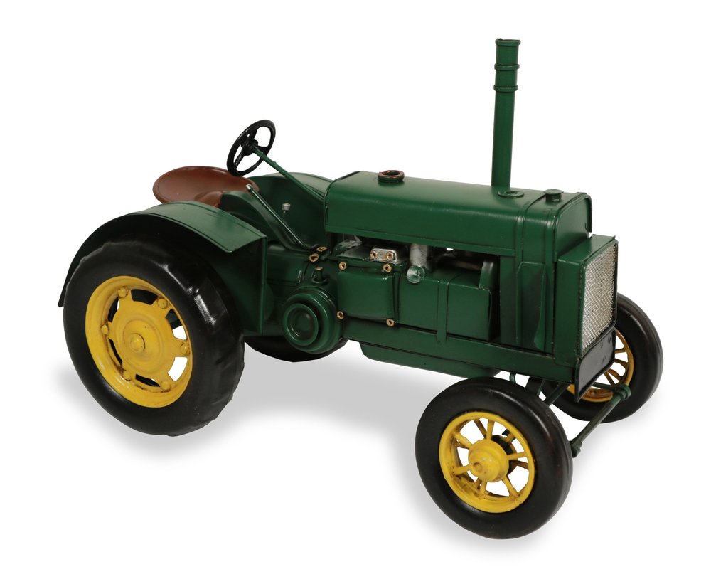 Bring some sizzle to your space with this eye-catching 8-inch green and black metal hand painted model tractor tabletop sculpture. This green and black hued piece represents high quality, expertly made from high grade metal. Great to use on its own or mix with other decorations for the perfect look. 8-inch h x 6-inch w x 16-inch d.