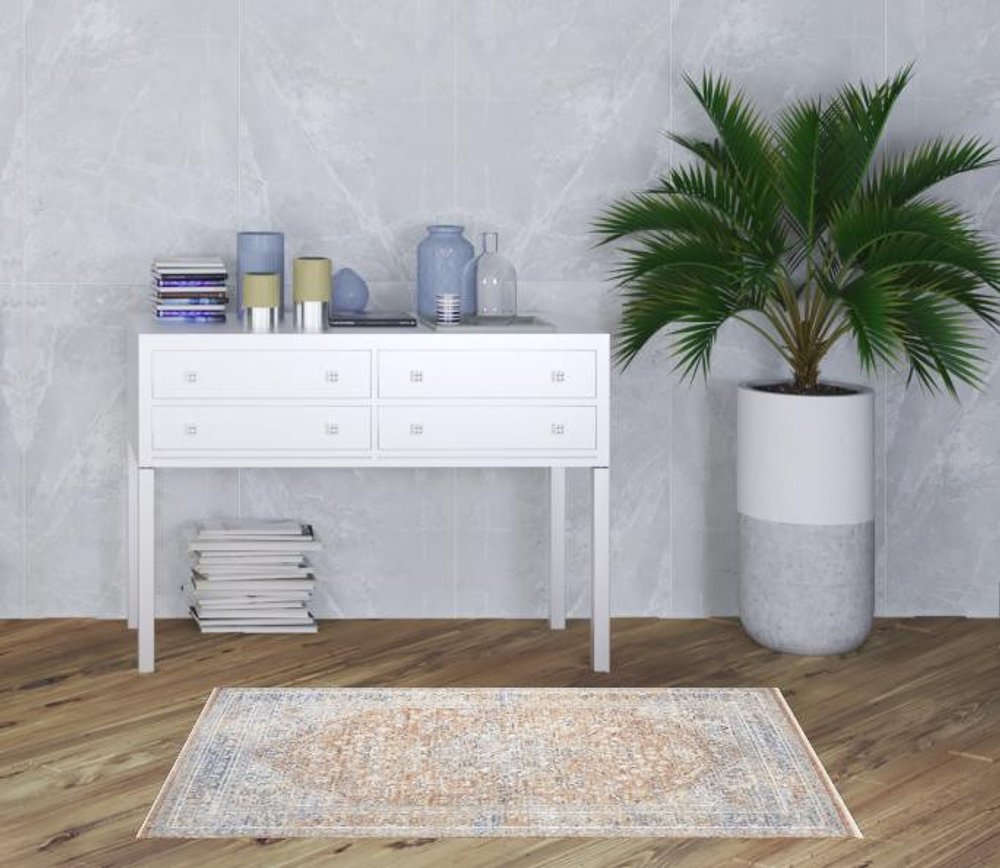 This 3-foot x 5-foot brown and blue oriental power loom distressed area rug, is a great way to add warmth to a room. This rectangle shaped rug features a oriental design in brown and blue to give it visual interest. A classic shape marries with good looking design for your space Place this area rug against a hardwood or tile floor and it will enliven your living space with style and sophistication. .25-inch H x 39.00-inch W x 63.00-inch D
