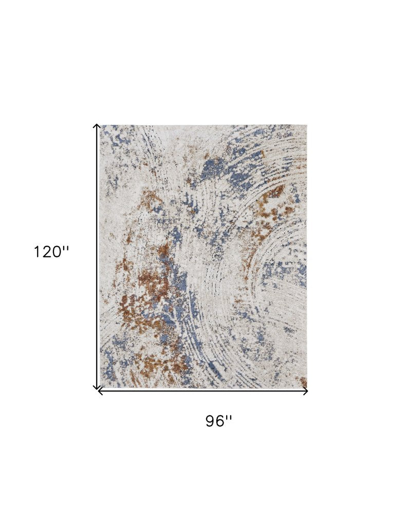 8' X 10' Ivory Blue and Brown Abstract Power Loom Area Rug