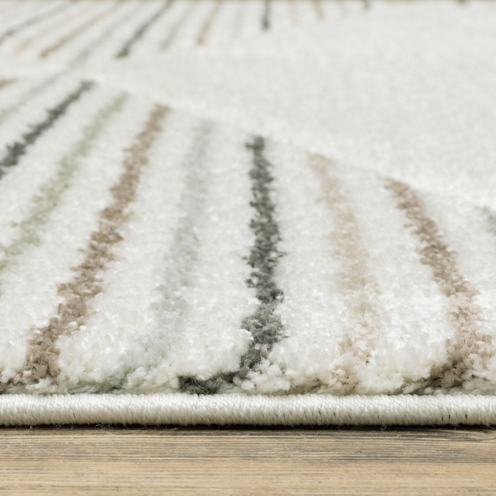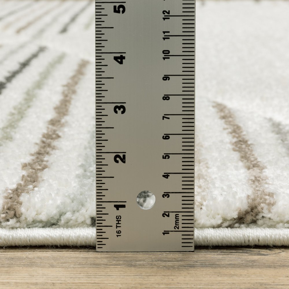 Add some artistry to your room with this 8-foot x 11-foot beige black and green geometric area rug. Ideal for spaces with kids and pets, this rug is stain resistant to help repel dirt and spilled liquids. Built to last, this rug crafted from polypropylene fibers is known for its durability and long lasting appeal. Rugs are a great way to showcase your style, hide imperfections, warm your home and reduce noise. 94.49-inch h x 129.92-inch w x 1-inch d.