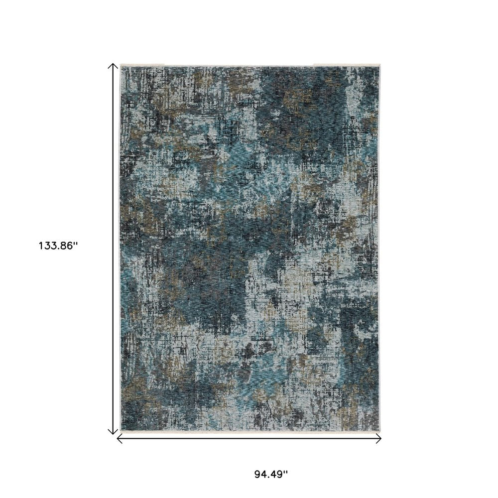 8' X 11' Blue And Gray Abstract Distressed Area Rug With Fringe