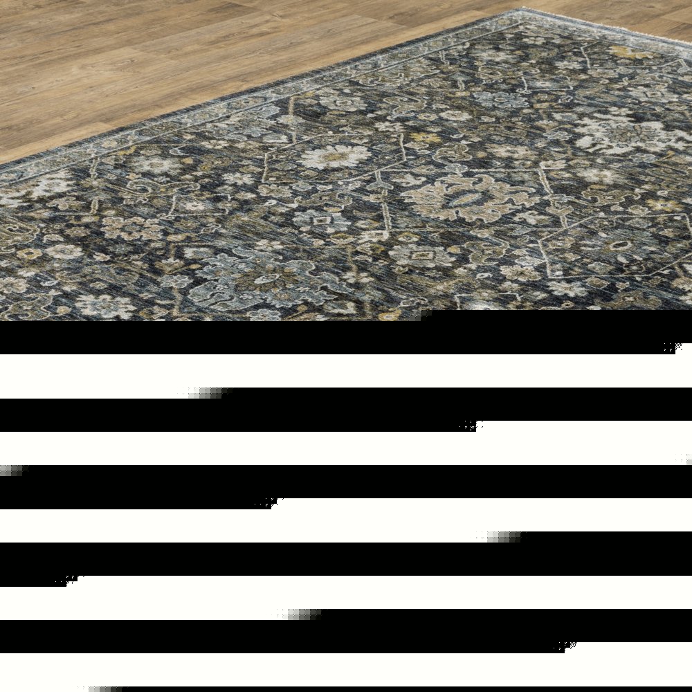 This 8-foot x 11-foot blue and dark blue oriental area rug with fringe, is a great way to add warmth to a room. Ideal for spaces with kids and pets, this rug is stain resistant to help repel dirt and spilled liquids. Built to last, this rug crafted from polyester fibers is known for its durability and long lasting appeal. Rugs are a great way to showcase your style, hide imperfections, warm your home and reduce noise. Tassel ends bring a timeless and fashionable look to your interior. 94.49-inch h x 133.86-inch w x 0.24-inch d.