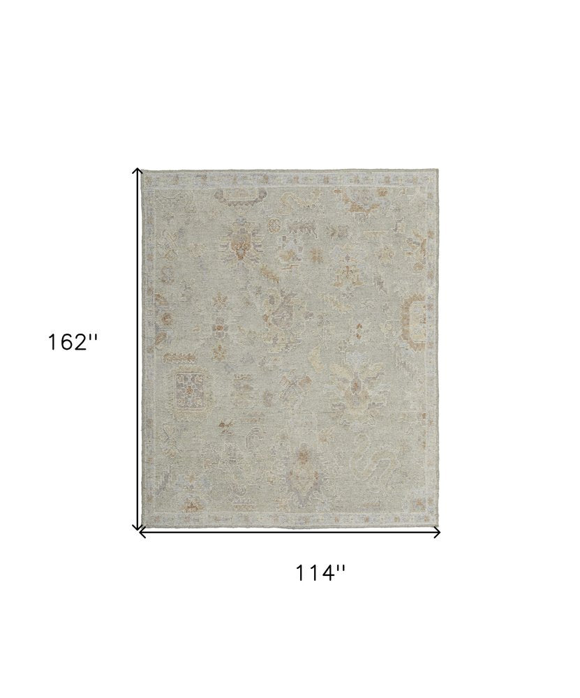 8' X 12' Gray and Brown Wool Floral Hand Knotted Area Rug