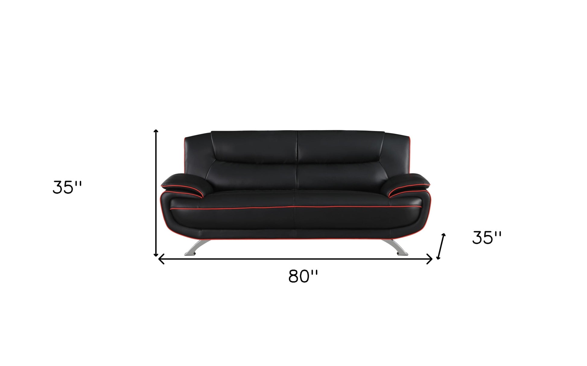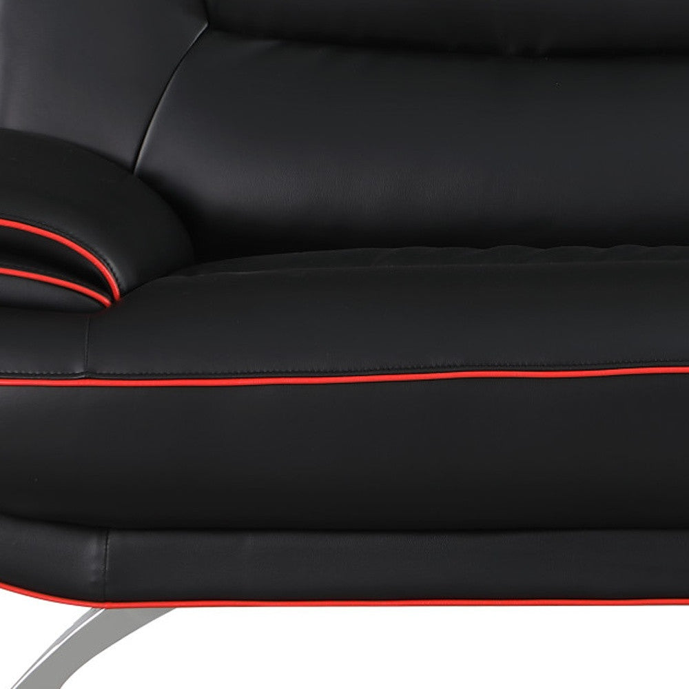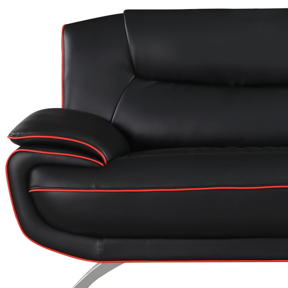 80" Black Leather Sofa With Silver Legs