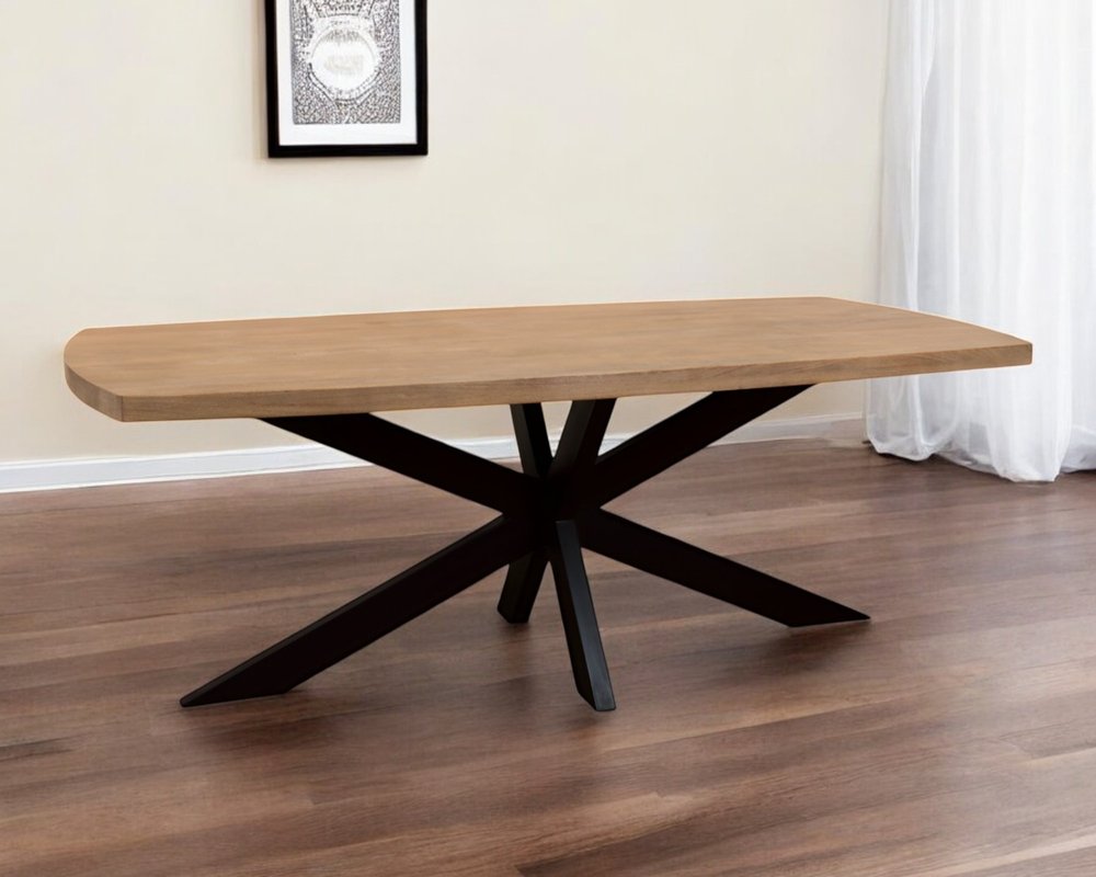 82" Natural And Black Solid Wood And Iron Pedestal Base Dining Table