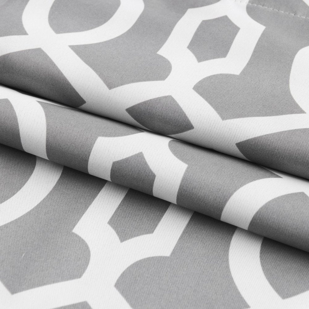 Enhance the ambiance of your living space with our 84-inch gray trellis black out window curtain panel. Crafted from high-quality polyester, this contemporary style curtain features a stunning silver and white color combination that effortlessly complements any decor. The blackout light filtration ensures privacy and creates a cozy atmosphere, perfect for bedrooms or home theaters. Measuring 54 inches in width, this single panel effortlessly covers your window, while the 84-inch length adds an elegant touch. With its chic trellis design, this curtain panel is a stylish addition to any room. Transform your home with this exquisite window treatment and enjoy the perfect balance of style and functionality. 84-inch H x 54-inch W x 1-inch D