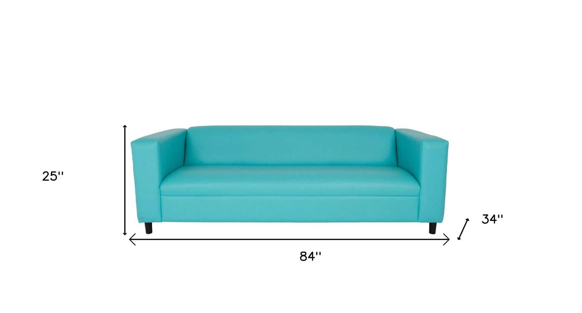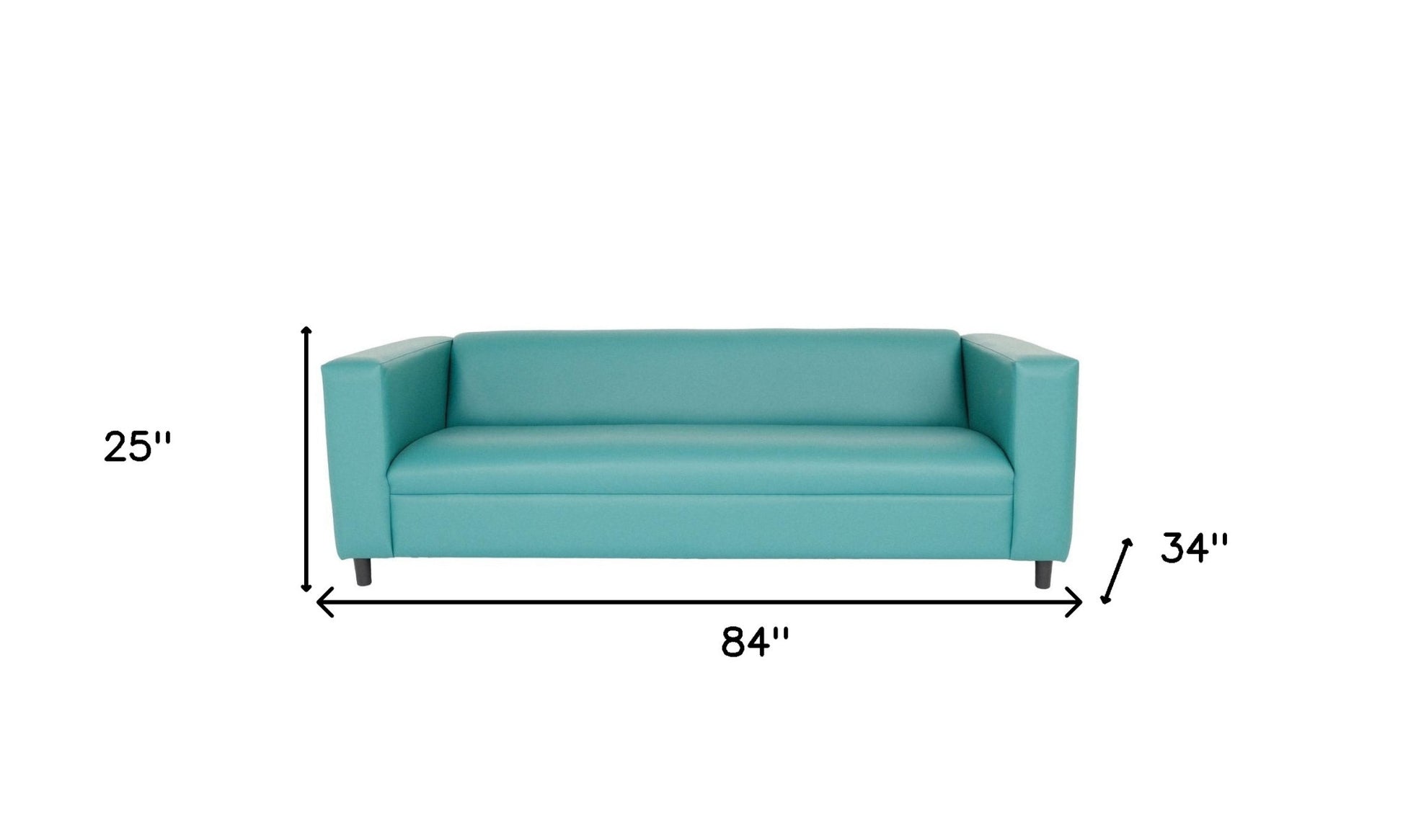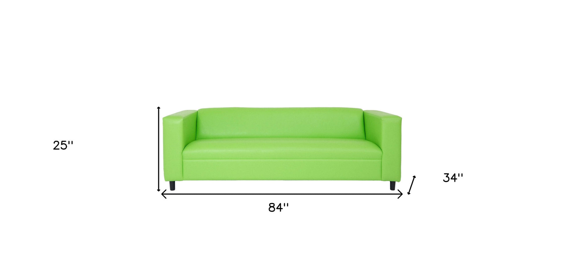 With a look and feel like leather, this 84-inch green and white faux leather geometric sofa with black legs is made from sturdy and resilient vinyl to stand up to the test of time. Sinuous springs construction gives this piece strong support and makes it comfortable to sit even for long periods of time. Square arms offer a comfy place to rest. Black solid wood legs effortlessly elevate the room and add a touch of contemporary design. Built to last, this sofa will be a great centerpiece for your room. 25-inch H x 84-inch W x 34-inch D