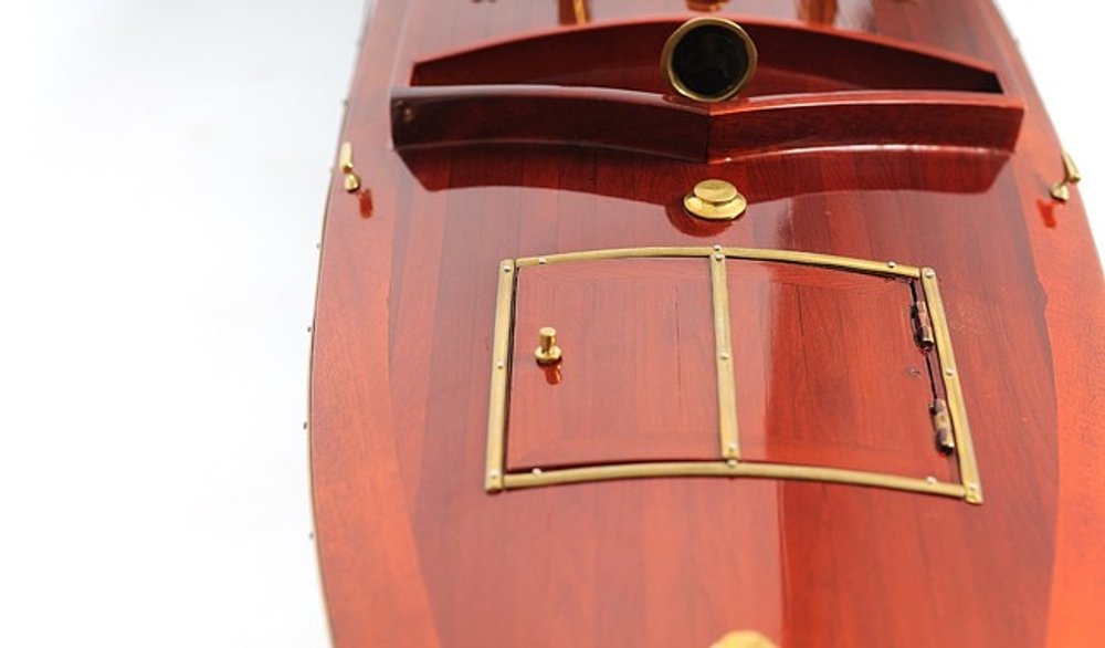 This 9-inch blue and brown solid wood hand painted model boat tabletop sculpture will add a beautiful decorative accent to your decor. The blue and brown coloring of this high quality solid wood accent will look great in most any space. This replica makes a great tabletop accent for your coffee table, desk, bookshelf, dresser or mantle. A perfect decorative addition for anyone who loves nostalgia and vintage style models and replicas. Great to use on its own or mix with other decorations for the perfect look. 9-inch h x 36-inch w x 7-inch d