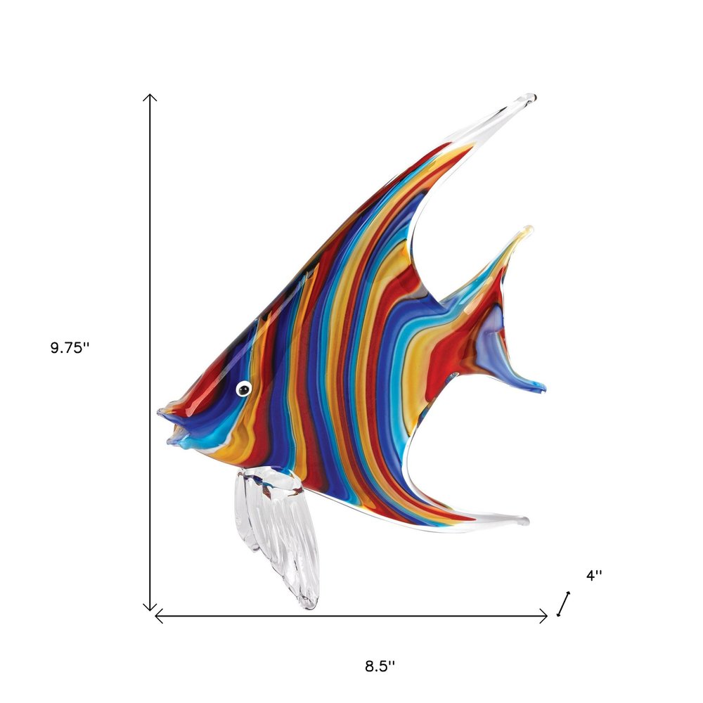 The 9-inch blue and red murano glass fish figurine tabletop sculpture is the perfect decorative accessory for your home. This blue and red colored piece is made from high grade murano glass. Bring a little bit of tropical sea life indoors with this good looking fish accent. Great to use on its own or mix with other decorations for the perfect look. 8.5-inch H x 4-inch W x 9.75-inch D