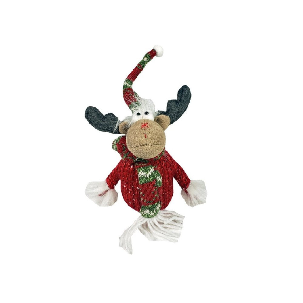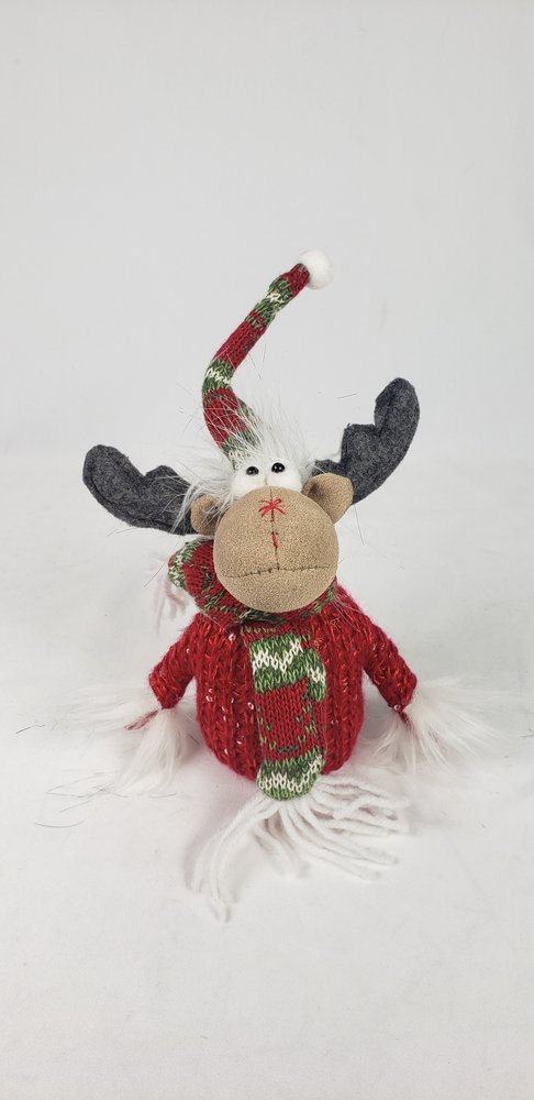 This 9" brown and red Christmas moose fabric sculpture is the perfect way to celebrate and decorate for Christmas. The brown and red coloring of this high quality and soft fabric friend will look great in most any space. This soft animal makes a great tabletop accent for your coffee table, counter, bookshelf, mantle, bed, chair, or even dining table. Add a sense of the woods, mountain or lodge lifestyle to your space with this good looking moose accent that is celebrating the Christmas season in style. Great to use on its own or mix with other decorations for the perfect look. You can be certain that you'll be leaving an impression with this unique piece. 9" H x 3" W x 3" D