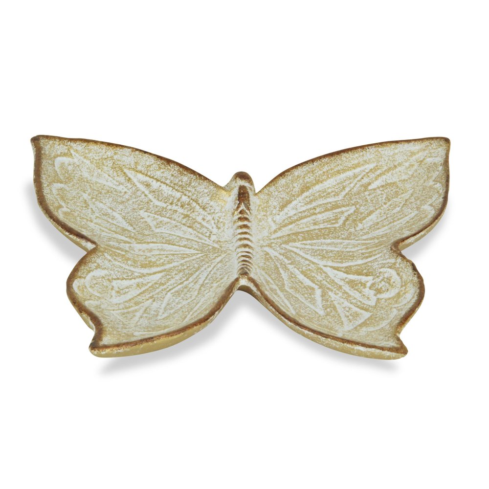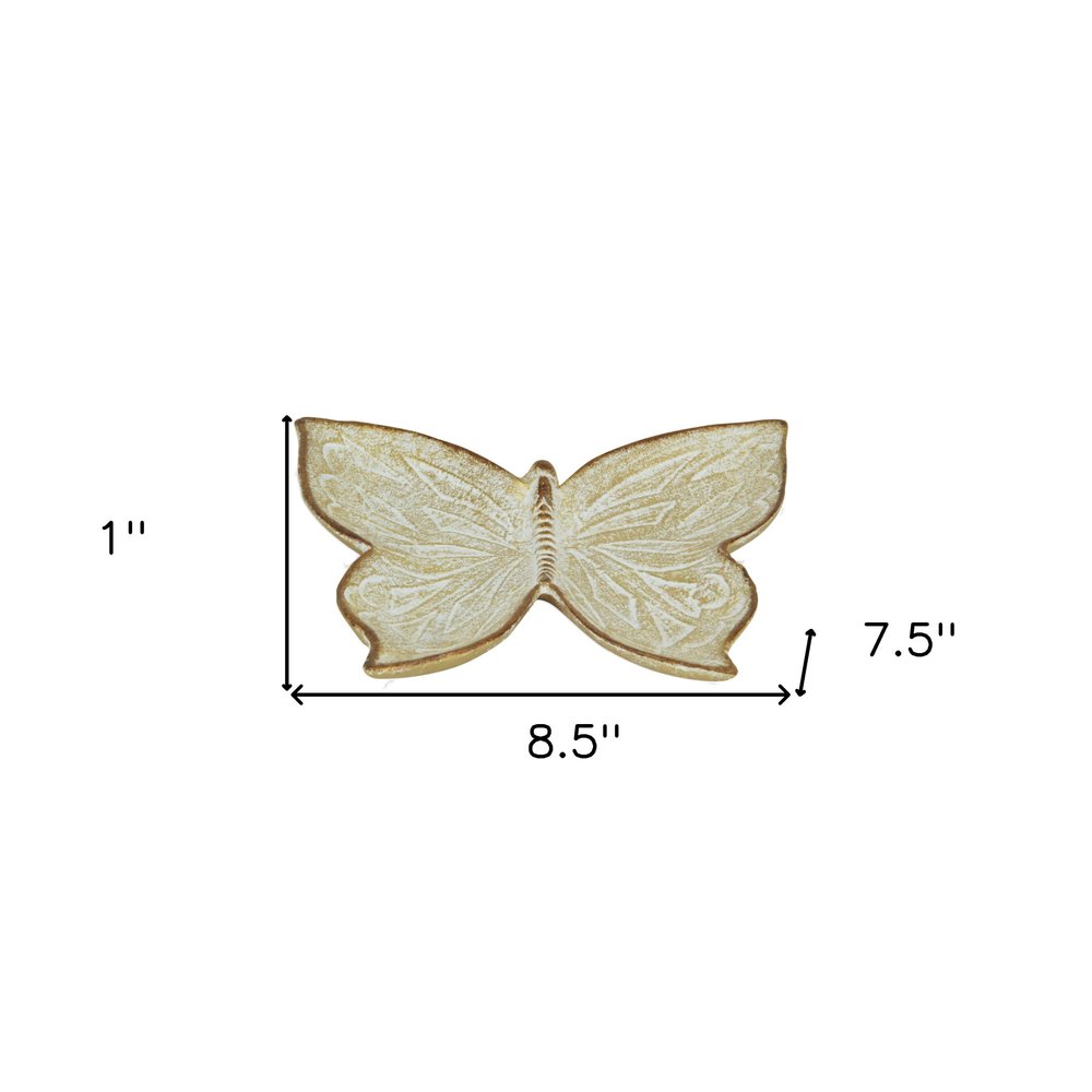 This 9" gold novelty metal handmade tray is beautiful enough to be left out on the counter or shelf when not in use. Made from metal, this durable novelty tray is perfect to use as serveware or as a showcase for other objects just as beautiful as it is. Intended for decorative, non-food use only, it's the perfect decorative accent piece. 1" H x 8.5" W x 7.5" D