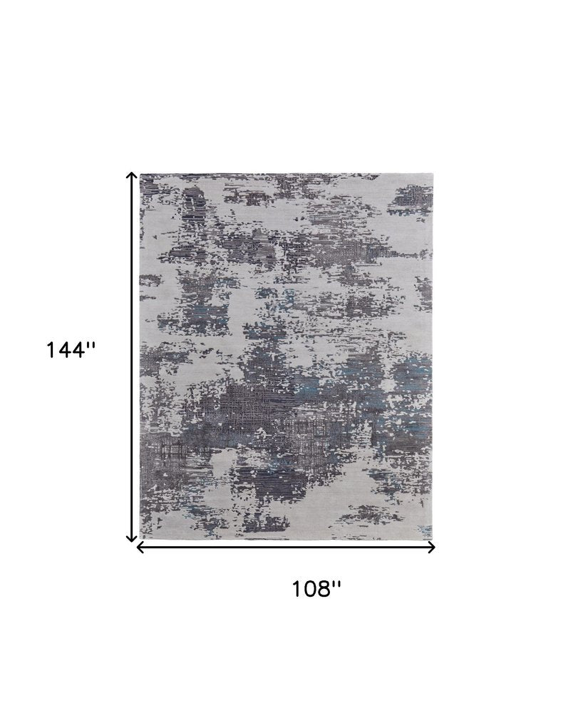 Add some artistry to your room with this 9-foot x 12-foot ivory brown and blue abstract hand tufted area rug. Crafted from wool blend fibers that give this piece premium texture, refinement, and appeal. This rectangle shaped rug features a abstract design that will add a functional and decorative accent to your space. This larger sized rug is ideal to create a focal point or statement piece in your room. 108-inch h x 144-inch w x 0.59-inch d