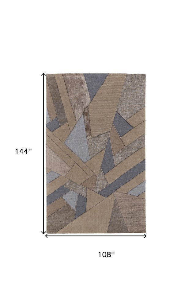 9' X 12' Tan Brown And Blue Wool Geometric Tufted Handmade Area Rug