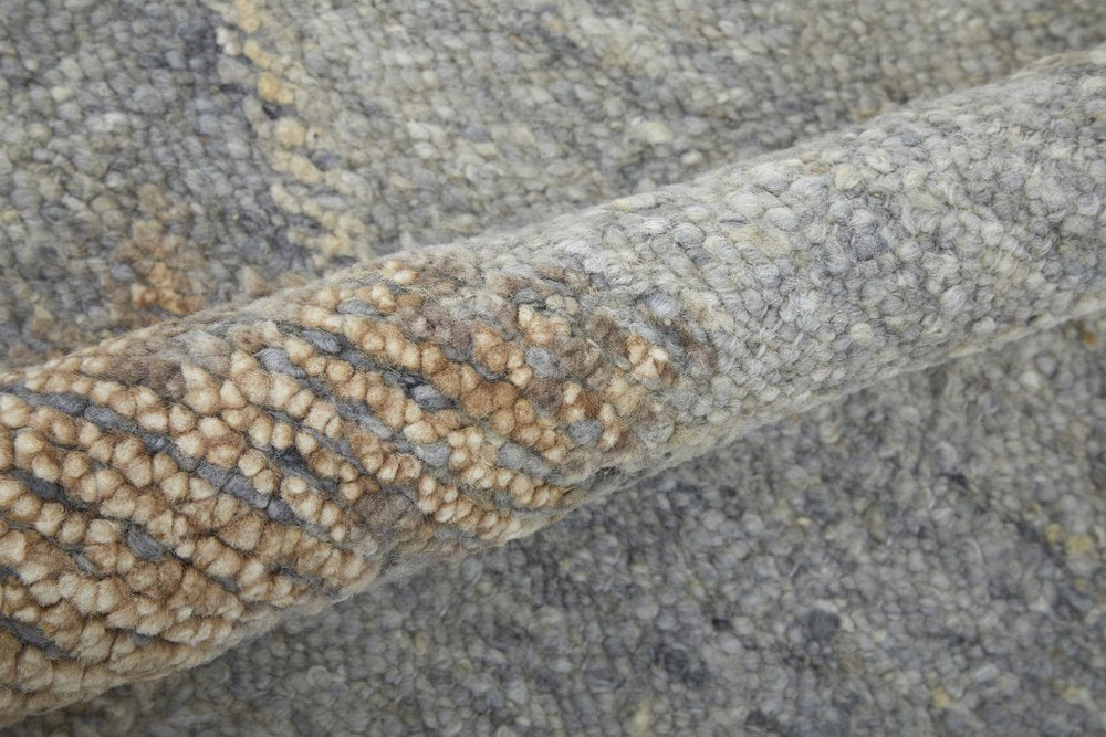 This 9-foot x 13-foot gray and blue wool floral hand knotted area rug, is a great way to add warmth to a room. Crafted by skilled artisans, this hand knotted rug is genuine and unique. No two will be exactly alike. This rectangle shaped rug features a floral design that will add a functional and decorative accent to your space. Ideal for spaces with kids and pets, this rug is stain resistant to help repel dirt and spilled liquids. This larger sized rug is ideal to create a focal point or statement piece in your room. 114-inch h x 162-inch w x 0.4-inch d