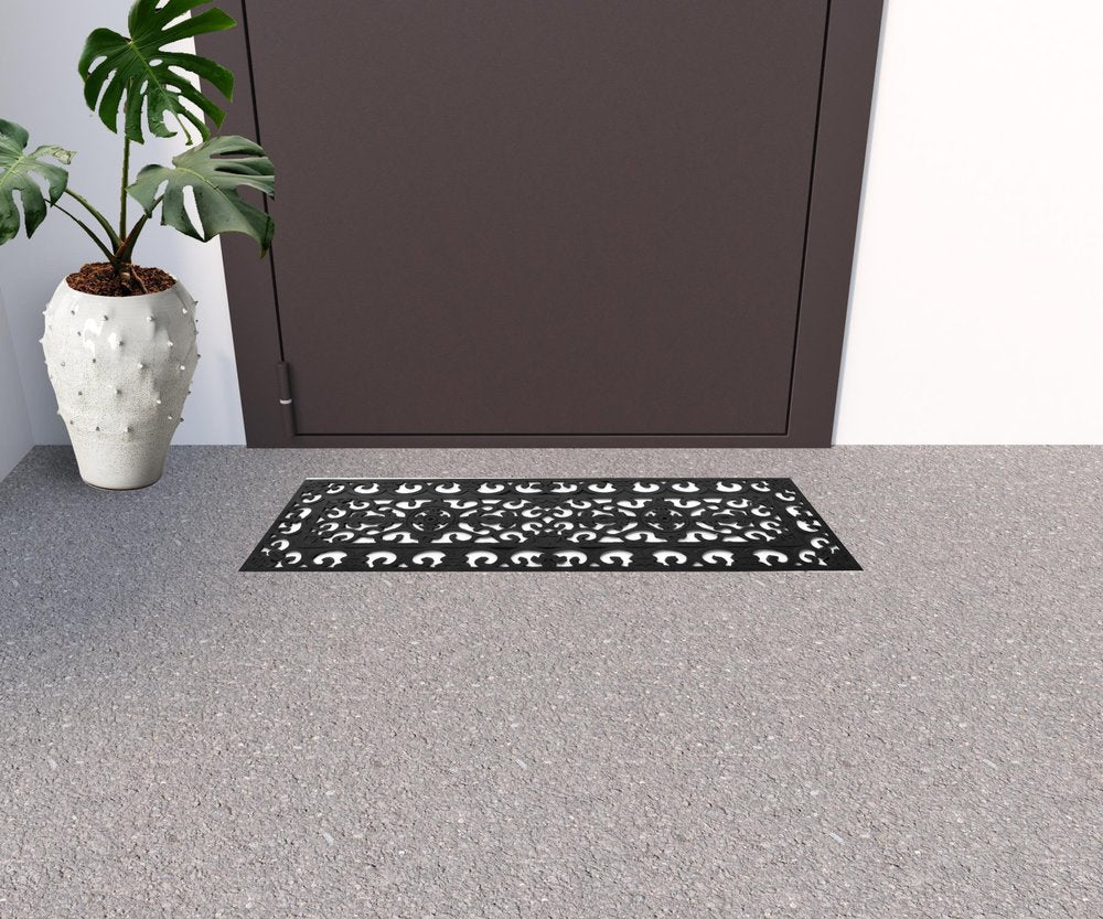 Ready to withstand heavy foot traffic, this 9-inch x 30-inch black rubber outdoor door mat is an ideal option for the front door or entrance way of your home or business. Crafted from rubber, this mat is not only functional but is a visually appealing accessory to welcome people to your home or business. Add this decorative mat to create a practical yet inviting welcome to all who enter. 9-inch h x 30-inch w x 0.15-inch d