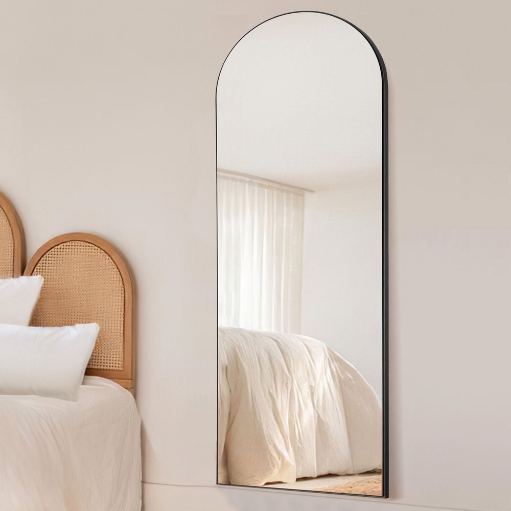If you want to add some brightness to your living space, the 59-inch black wood arch freestanding and wall mount accent mirror is perfect for you. Framed with wood, this mirror will bring practical application and fashionable design to your space, adding some modern flair to your decor. Features quality craftsmanship in every facet that ensures durability and long-lasting wear. Produced with premium quality glass for a beautiful reflection, this mirror will provide an exceptional visual experience. 59.06-inch h x 19.69-inch w x 1.18-inch d.