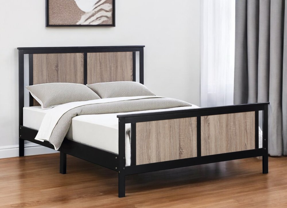 Black And Walnut Reversible Solid Wood Full Bed Frame