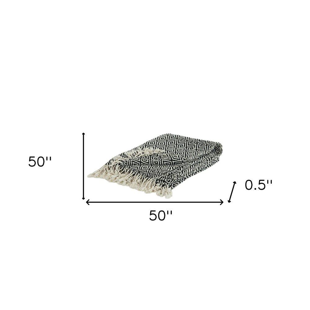 50" X 60" Black And White Cotton Chevron Throw Blanket with Tassels
