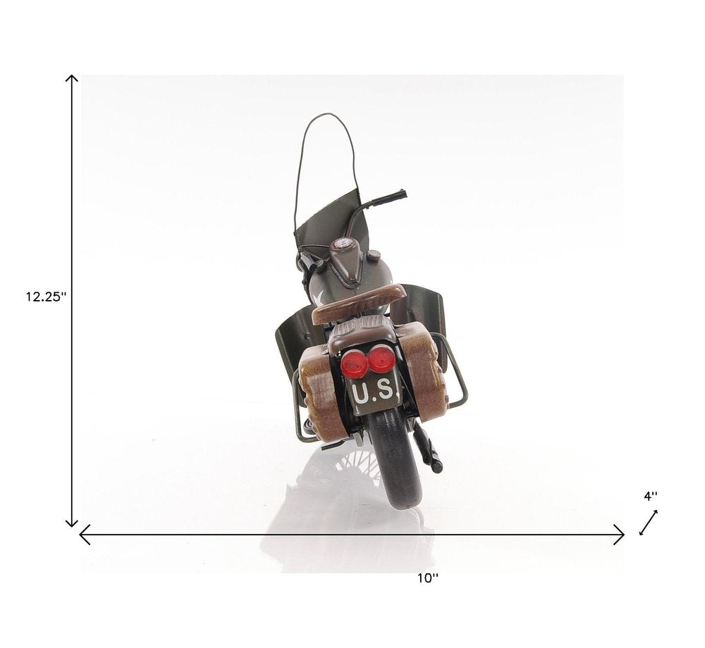 Authentic and realistic, the c1942 WLA Harley Davidson Sculpture is a 1:7 scale replica of the iconic bike built for military use in WWII. It features Harley's original V-twin engine design and super cool U.S. Army markings. Handcrafted out of metal, it features all the original details of the bike. The spoke rolling wheels, pedals, and exterior details such as ammo and gun pouches only emphasize the bike's character. A great gift for bike lovers and enthusiasts. 10" x 12.5" x 4"