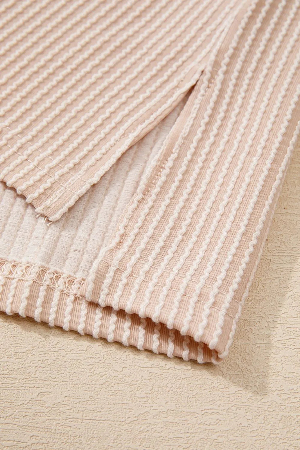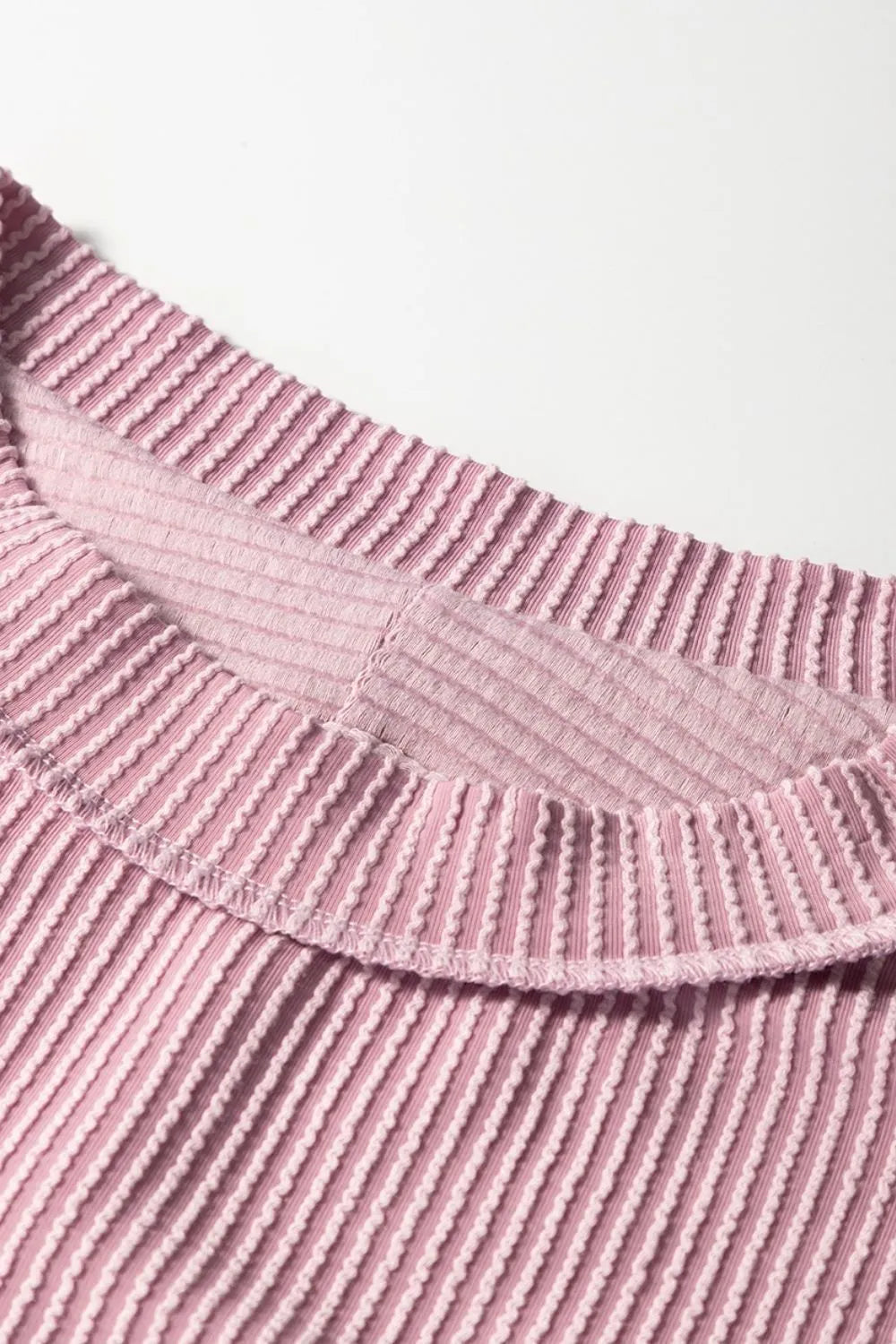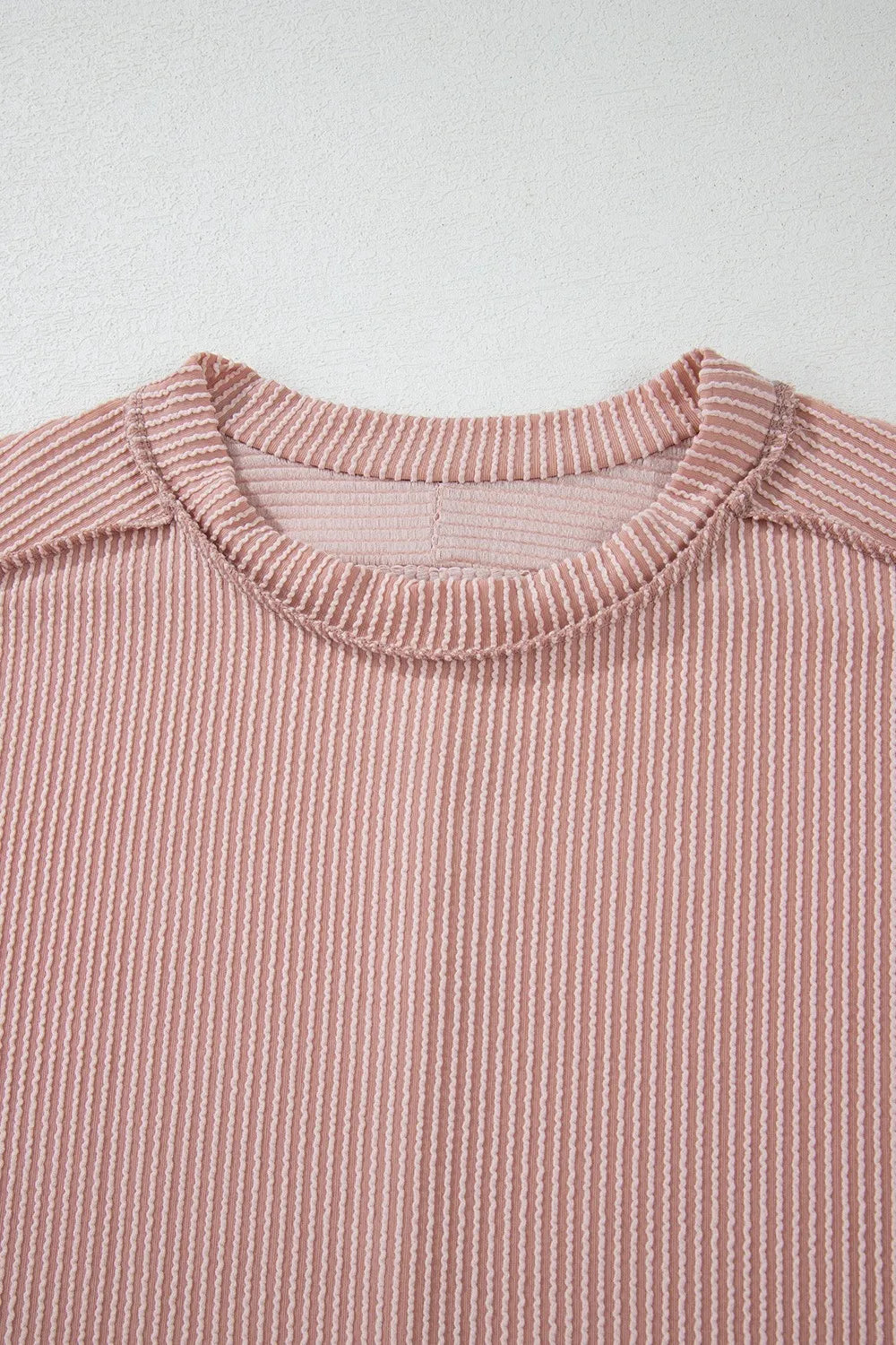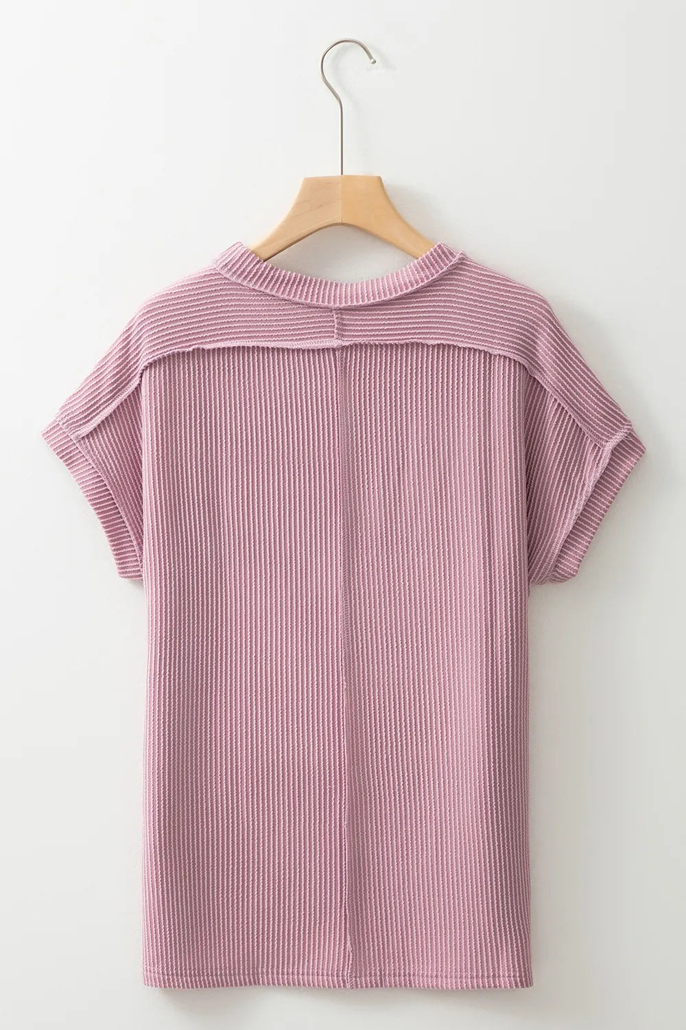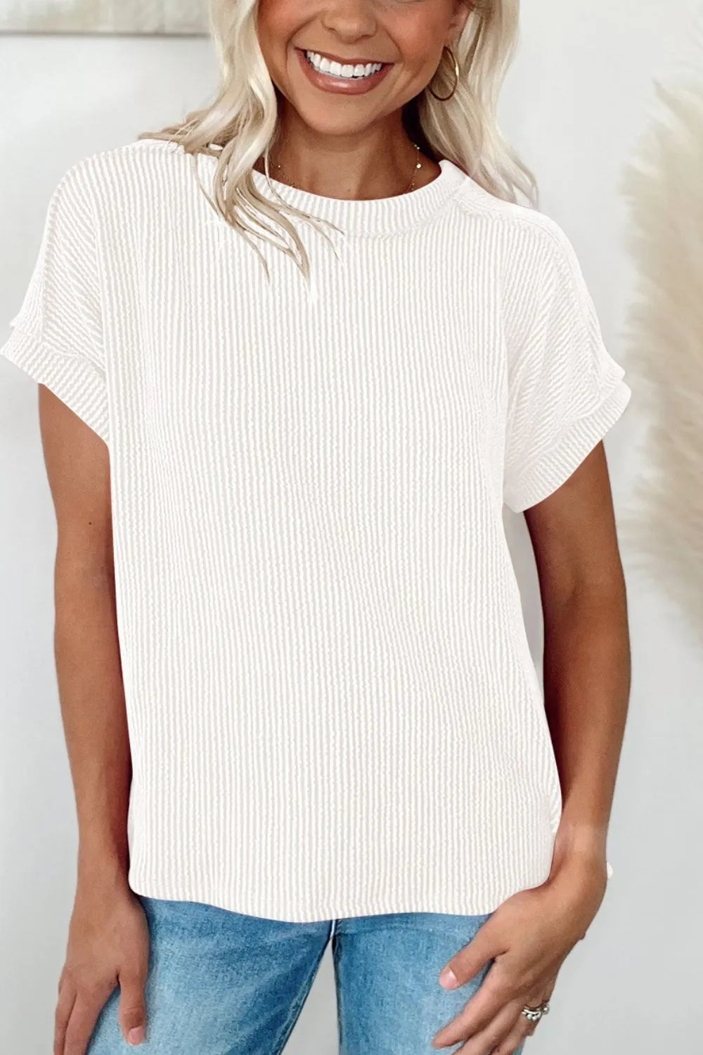 Casual Ribbed Short Sleeve Round Neck T-Shirt