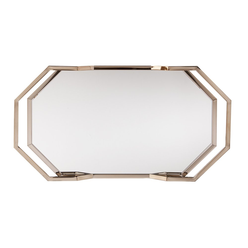 31" Champagne Iron and Mirrored Glass Octagonal Rolling Bar Cart