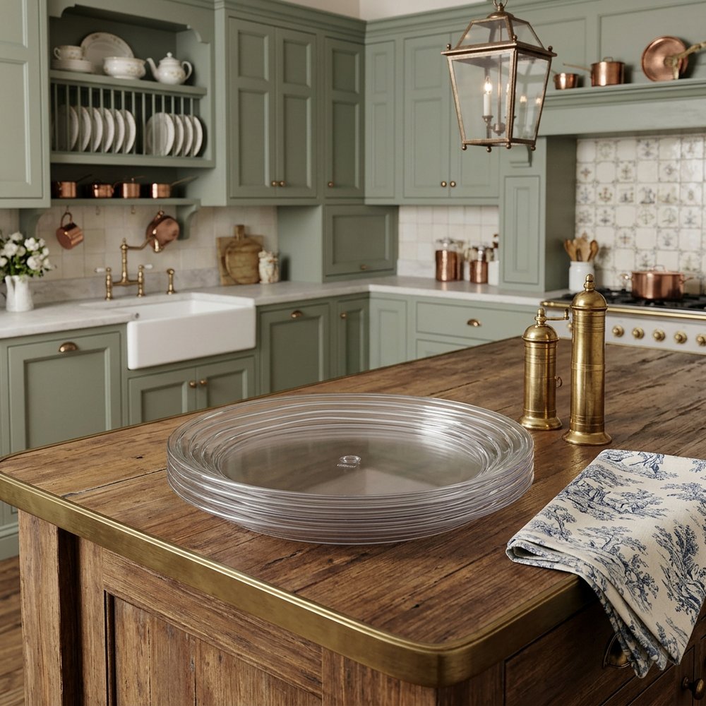 Enhance your dining experience with our clear four piece round swirl acrylic service for four dinner plate set. This set includes four round dinner plates, perfect for serving a delectable meal to your loved ones. Crafted from durable acrylic material, these plates are not only chip resistant but also dishwasher safe, making them easy to clean and maintain. The stackable design allows for efficient storage in your kitchen cabinets. With a timeless traditional style and a clear color, this dinnerware set effortlessly complements any table setting. Elevate your dining decor with our elegant and practical clear four piece round swirl acrylic service for four dinner plate set. 0.1-inch H x 12-inch W x 12-inch D