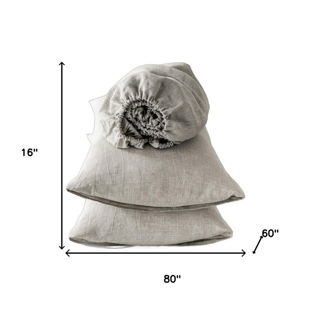 Experience hotel-quality comfort at home. This four piece light gray linen sheet set is perfect for creating a luxurious retreat. Crafted from premium quality linen that is known for its moisture wicking properties to keep you cool and comfortable, these sheets are a luxury but so worth it. They are breathable, have a soft thick texture that will get softer over time, and are wrinkle resistant (not wrinkle free). Immerse yourself in the spirit of achievement and let the vibrant colors and celebratory patterns fill your sleep space. Sleep soundly, knowing you've conquered your goals!. 16-inch H x 80-inch W x 60-inch D