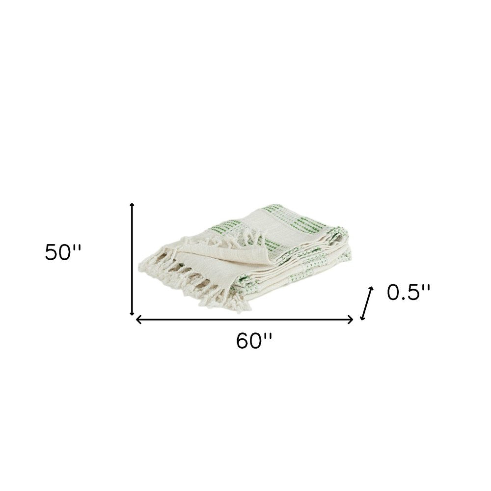 Gray and Green Woven Cotton Throw Blanket with Fringe