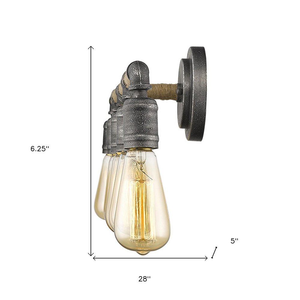Deceptively Simple And Simply Hip. Antique Gray Metal With Industrial-Looking Couplings And Sockets. Jute Wrapped Uprights Add Color And Texture.
