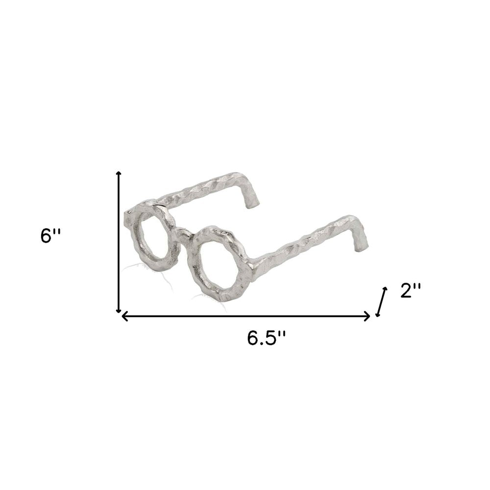 7" Silver Aluminum Textured Round Eyeglasses Tabletop Sculpture