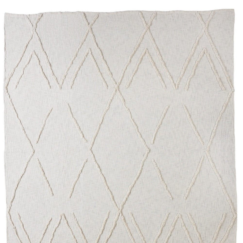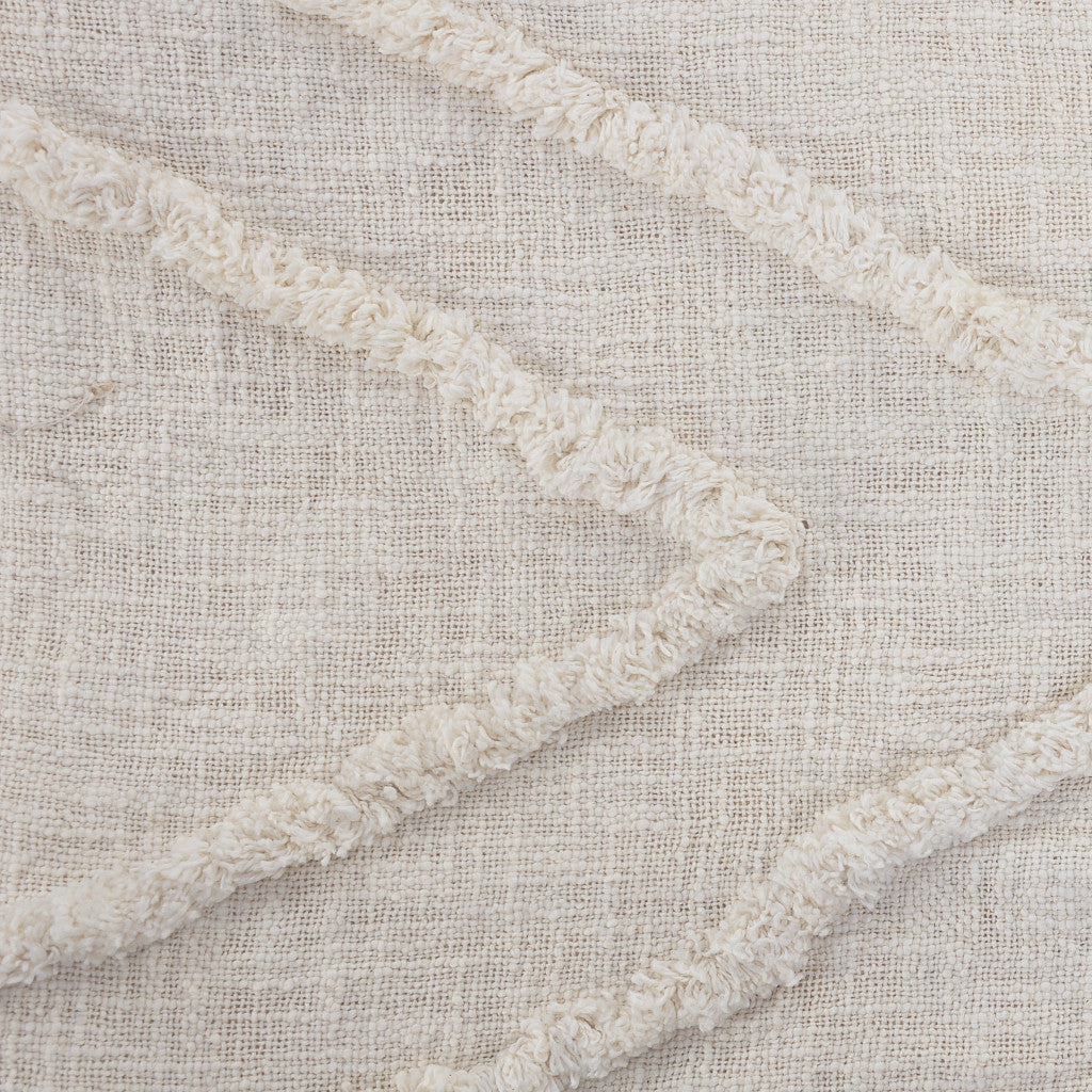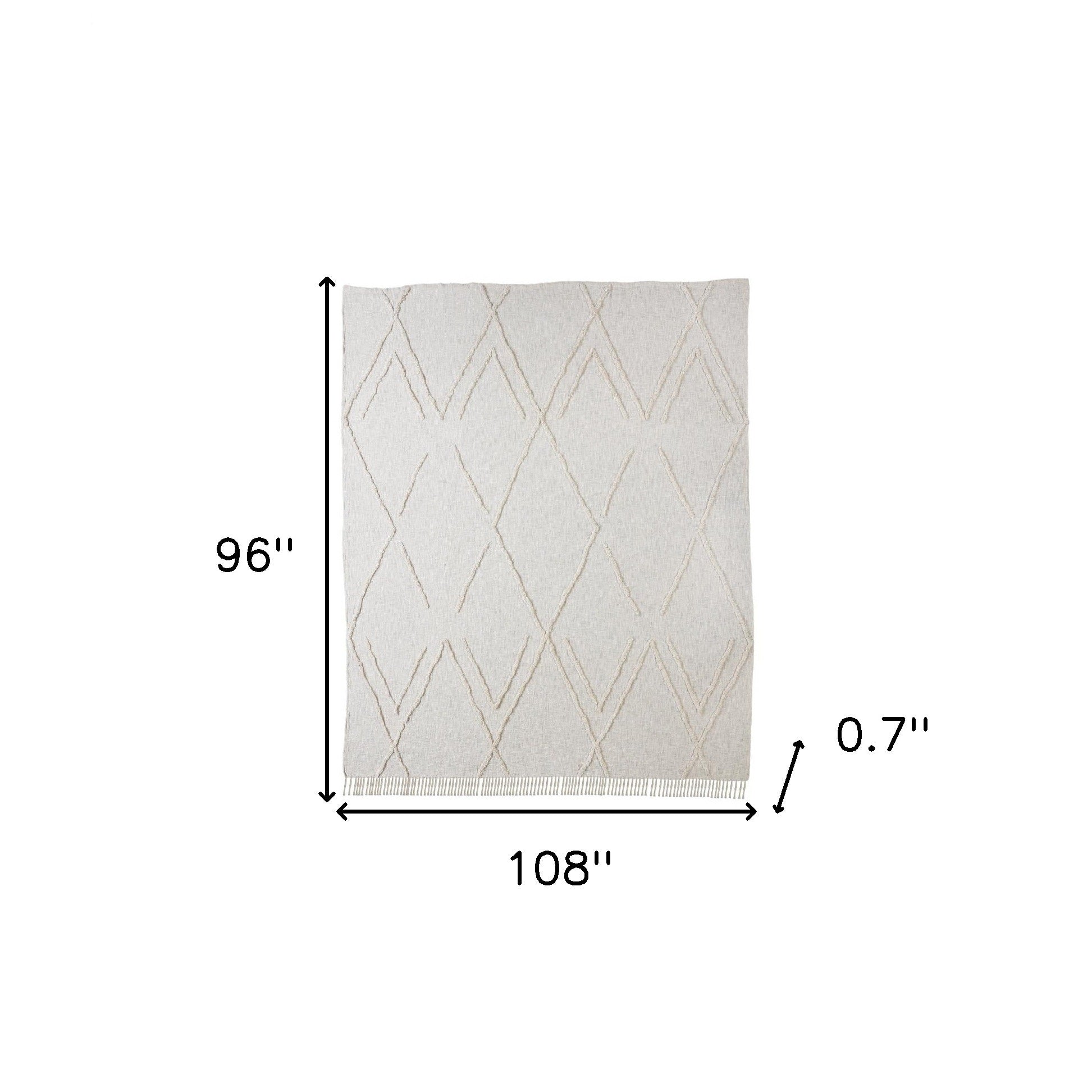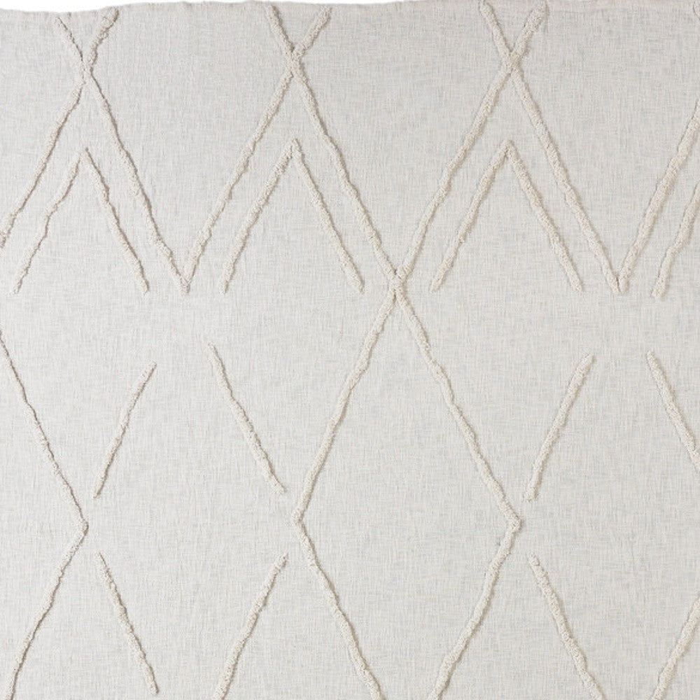 Elevate your bedroom with this chic ivory geometric queen cotton coverlet with fringe. Crafted from high-quality cotton with a thread count of 300, this bohemian-style top of bed adds a modern touch to your space. Perfect for a double or queen bed, this coverlet is the perfect lightweight design for year round use. Embrace the tufted textural geometric pattern and the fringe details to transform your bedroom into a trendy retreat. 96-inch H x 108-inch W x 0.7-inch D