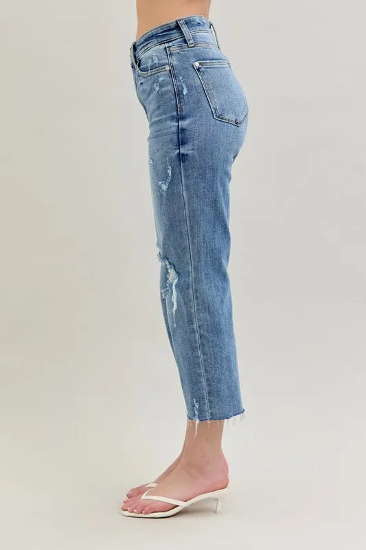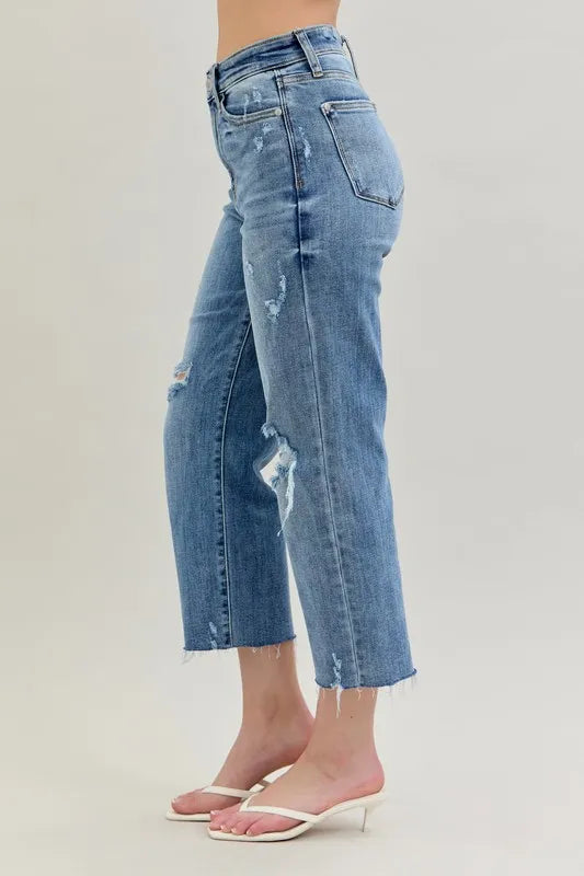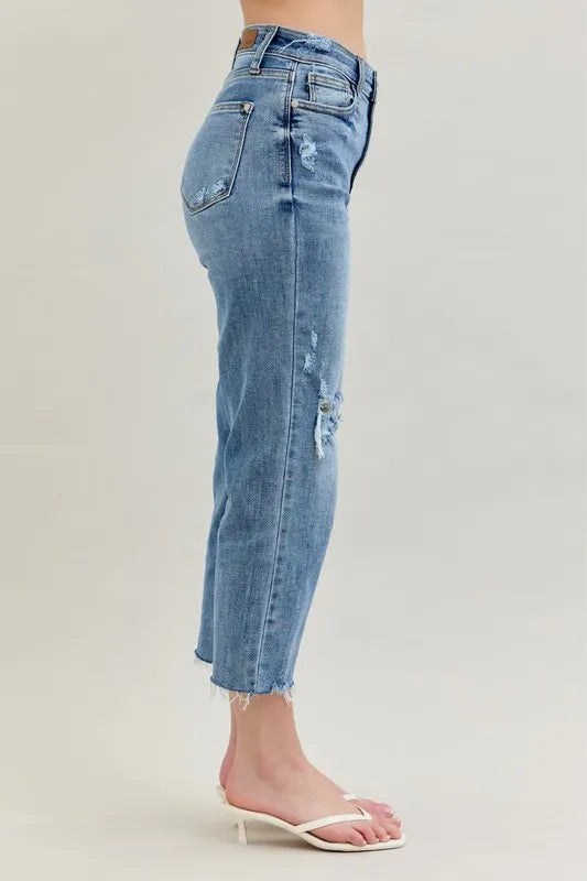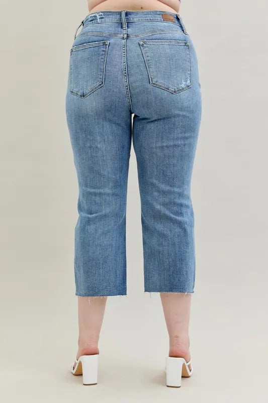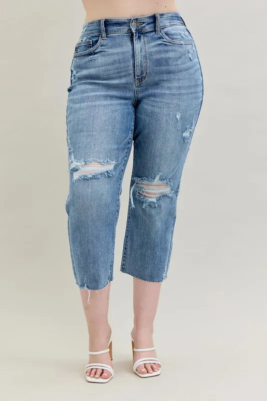 Judy Blue Full Size High Waist Destroy Crop Wide Leg Jeans Plus Size