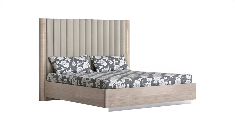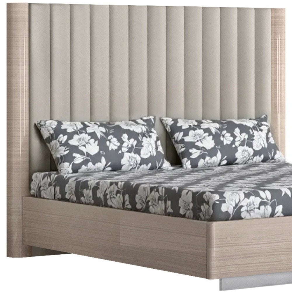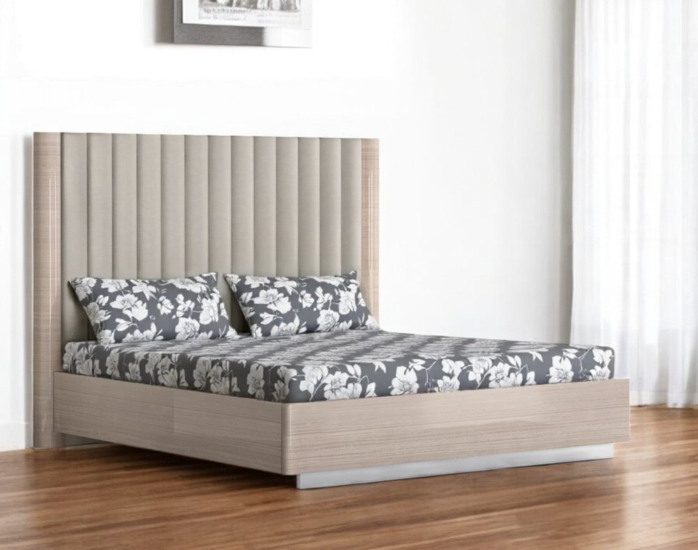 King Size High Gloss Beige Upholstered Channeled Headboard Bed Frame