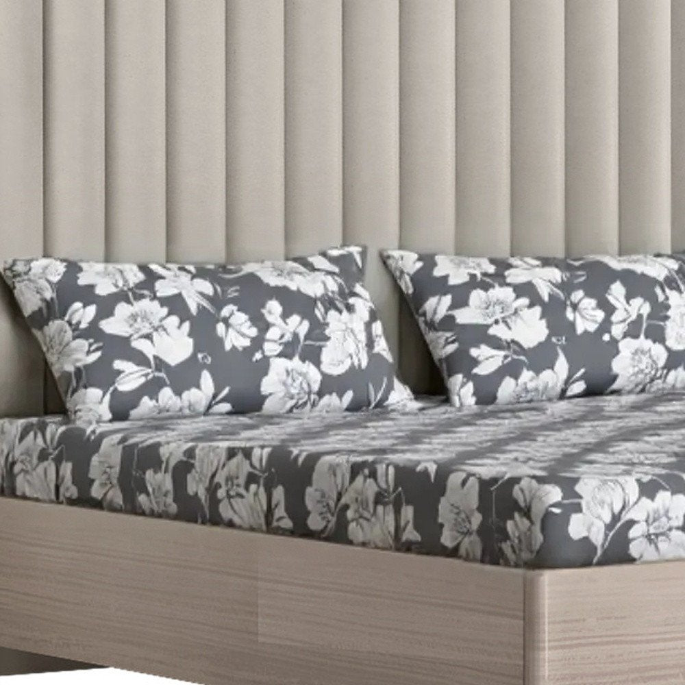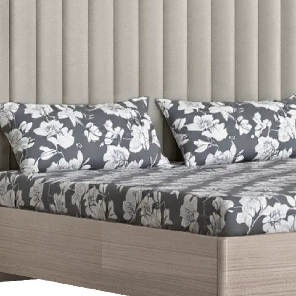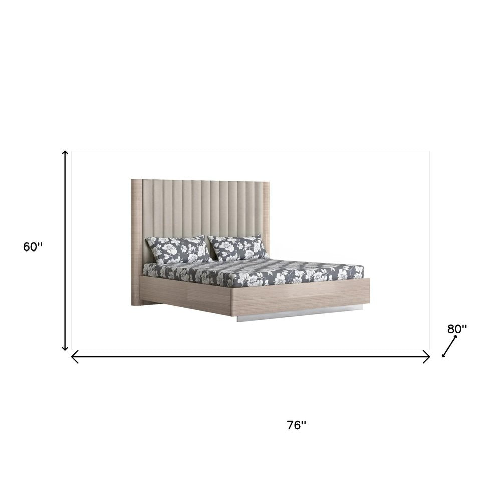 Create a haven for relaxation and sweet dreams with this fabulous king size high gloss beige upholstered channeled headboard bed frame. Partially upholstered in a beige rugged fabric, this bed brings a unique and designer perspective to your space. Quality craftsmanship in every facet of production ensures durability and long-lasting wear This bed will help to create a peaceful environment that will provide restful slumber for years to come. 60" H x 76" W x 80" D