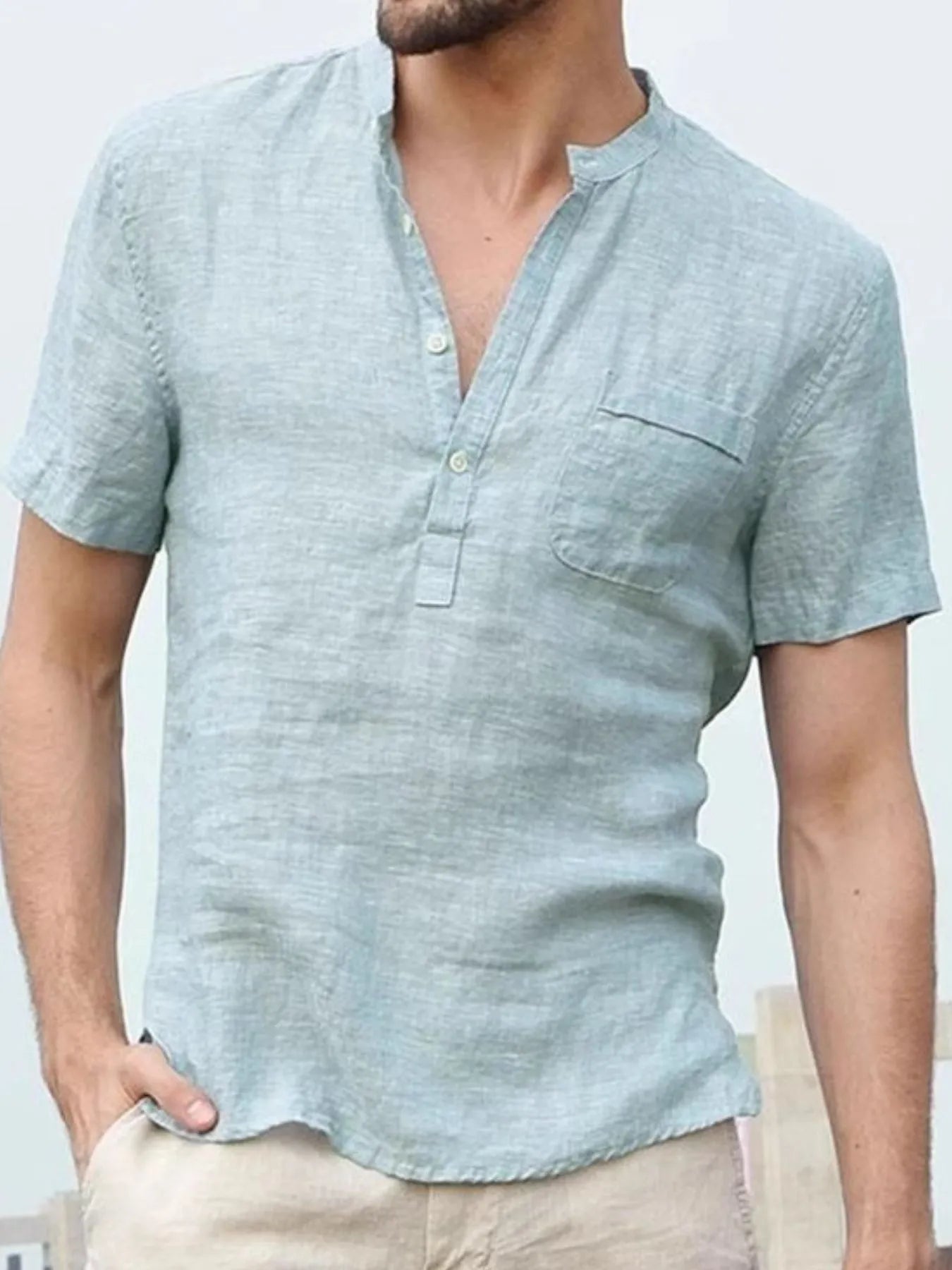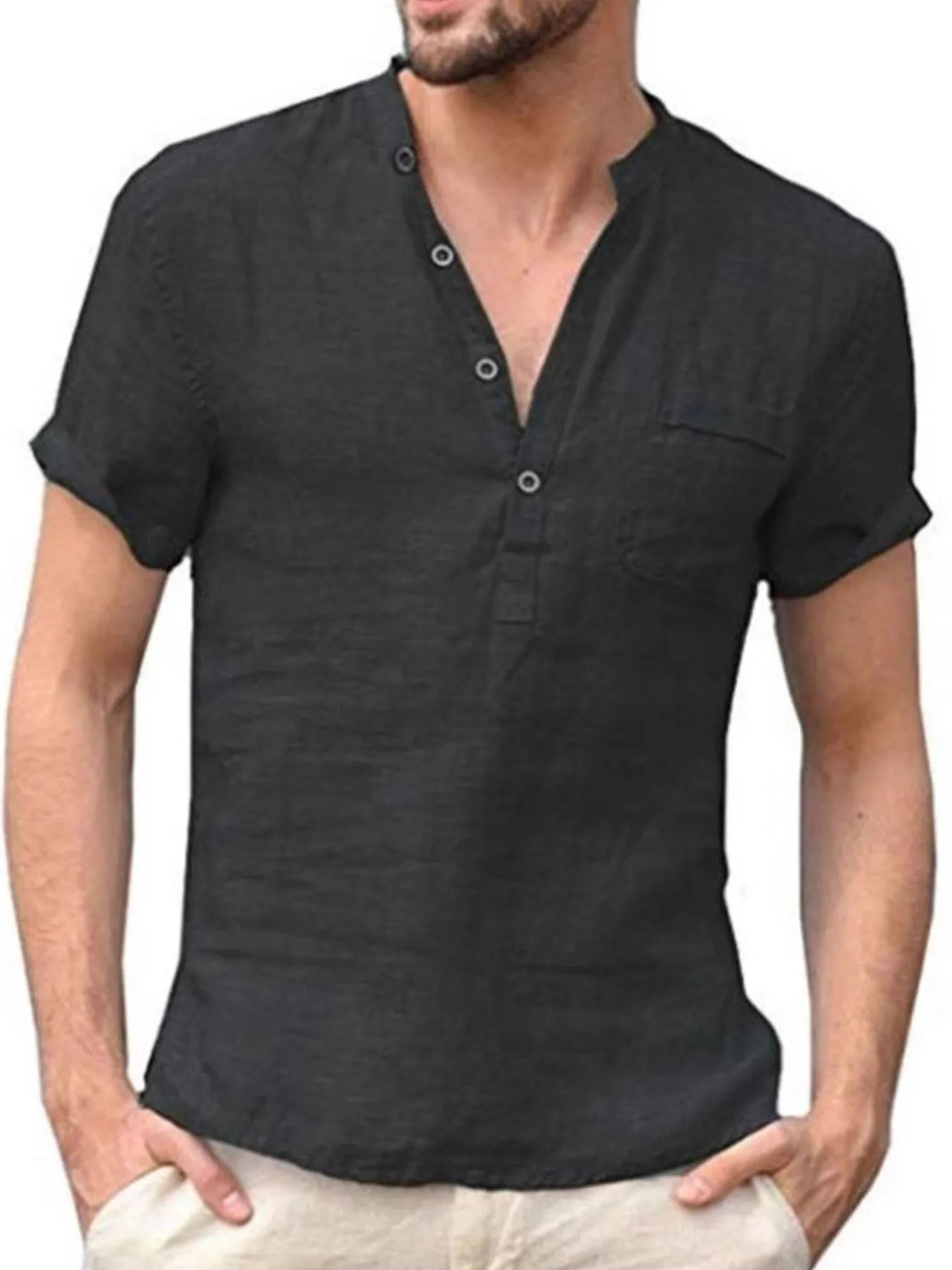 Men's Full Size Casual Linen Henley Short Sleeve Shirt Plus Size