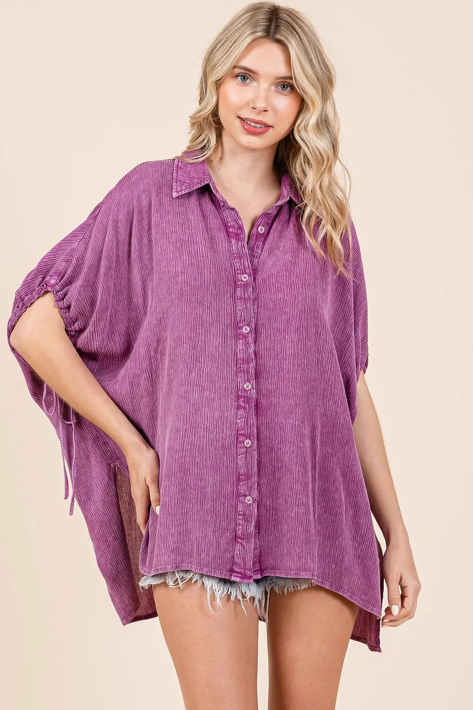 Mittoshop Mineral Wash Loose Fit Button Down Shirt