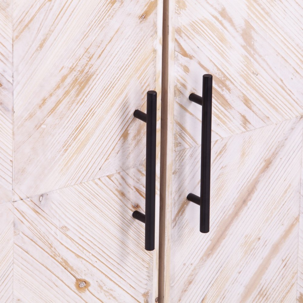 Accented with updated black hardware and legs, this Modern Farmhouse Rustic Natural Accent Storage Cabinet is a great look for you living room, dining room, kitchen, bedroom or office. This casual chic cabinet is made of reclaimed wood with it's natural knots and grains and finished to keep the natural light wood coloration. Double doors feature X-shaped paneling reminiscent of barn doors that combined with the black iron accents creates a rustic statement with edgy flair. 30.5" x 36" x 19.5"