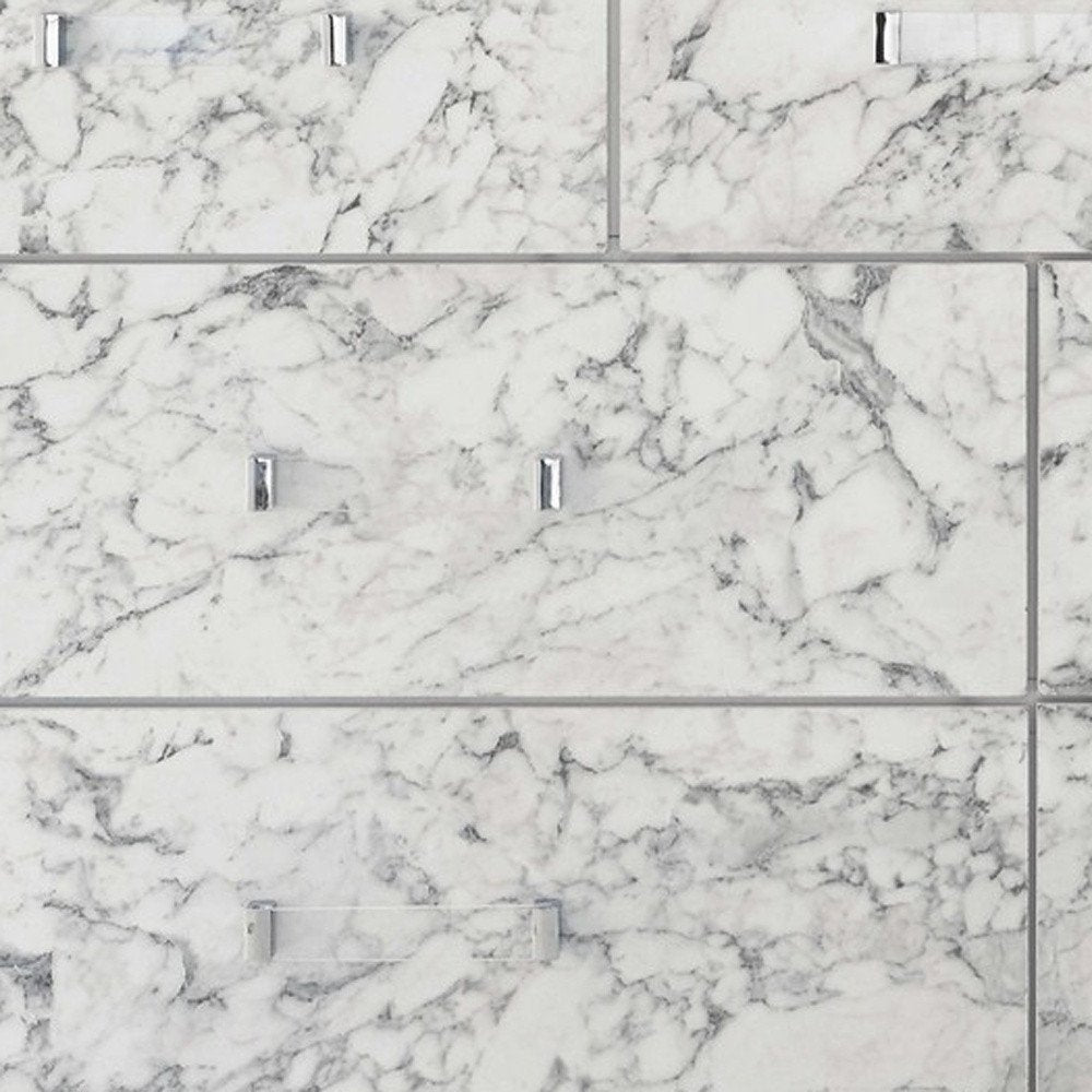 Modern White Dresser With 7 Faux Marble Detailed Front Drawer.