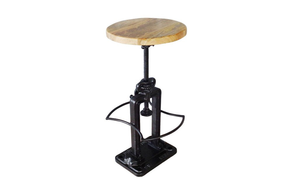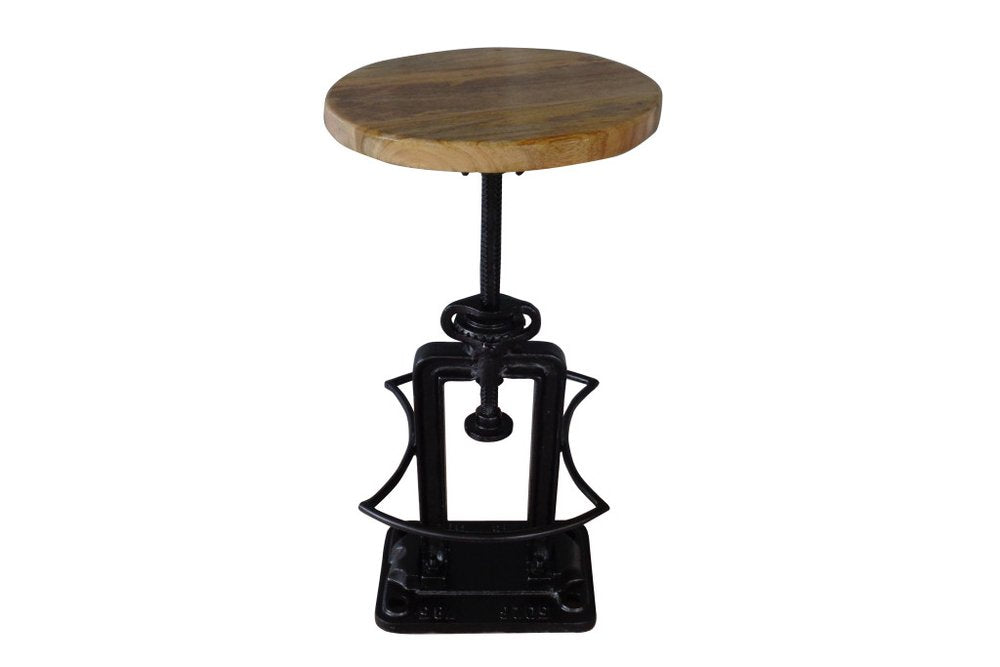 Bring a trendy bar vibe to your space, with this natural and black solid wood and iron backless adjustable height bar chair. The natural solid wood seat of this stool is a nice contrast to the high quality, black iron of the base. A backless mixed with a round shaped seat makes this chair both comfortable and fashionable. Designed with a footrest for comfort and convenience. 21-inch h x 15-inch w x 13-inch d.