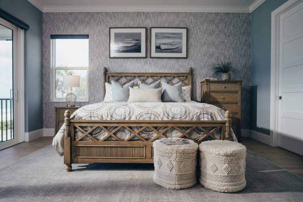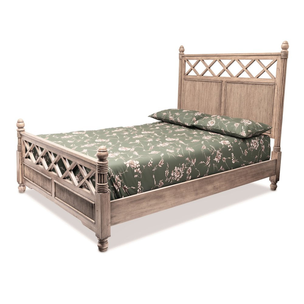 Natural Carved Geometric Solid Wood Queen Bed Frame