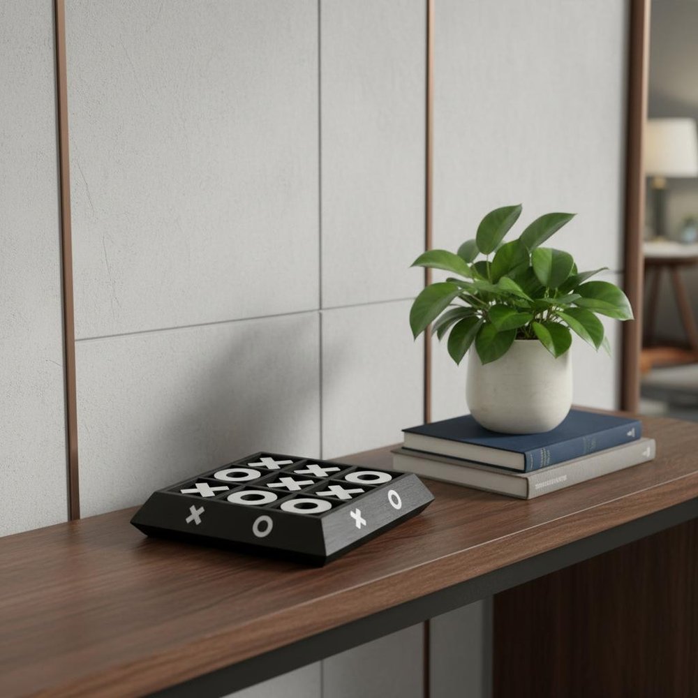 Nickel And Dark Wood Tic Tac Toe Game Sculpture