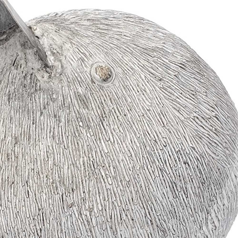 Bring some sizzle to your space with this eye-catching 8-inch off white resin and metal snipe bird tabletop sculpture. This piece is made from resin and has a weathered and distressed off-white finish on it. The textured finish mimics the look of bird feathers. The body of the bird has a solid round shape with eye details and a large beak. Attached to the body there are two thin metal legs that go down in to webbed feet which have the same rustic finish. This pretty bird brings a touch of coastal style and some outdoor beauty to your space. 8-inch h x 6-inch w x 6-inch d.