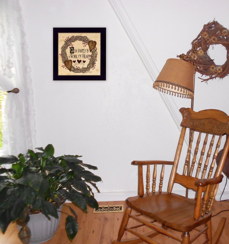 Add an air of fashion to your room and rejuvenate the space with this our family is a work of the heart linda spivey ready to hang framed print black frame black framed print wall art. This print is a visual artistic expression that allows you to decorate your space in style. Reproduced for you on paper, this hanging decorative accent will be a trendy and fashionable way to dress your walls. Adding this hanging wall art to your space to make your room feel more finished and attractive. Instantly liven up your space with this art that brings color and dimension to your walls. 14-inch H x 14-inch W x 1-inch D