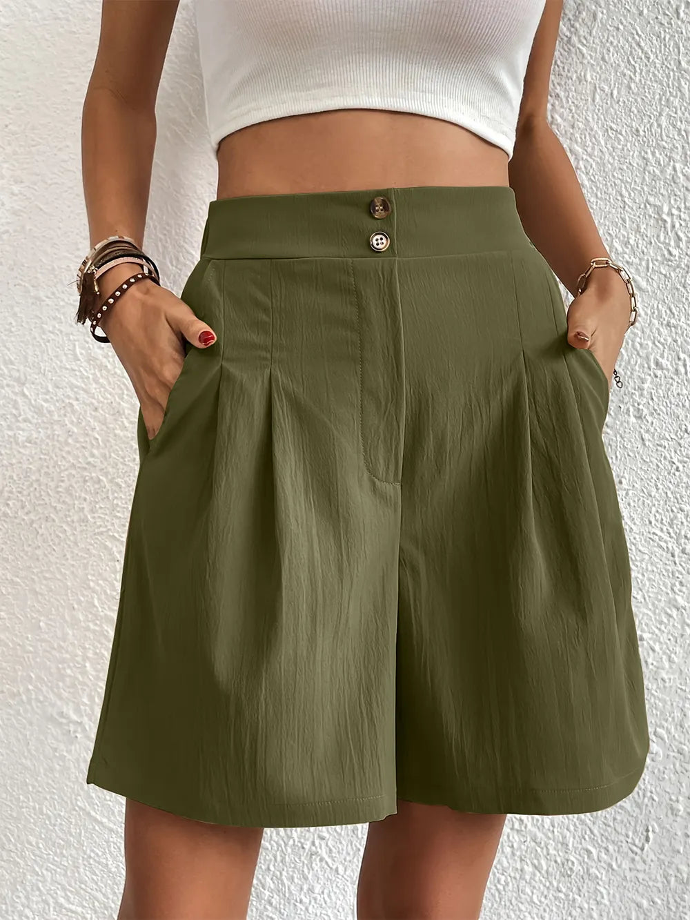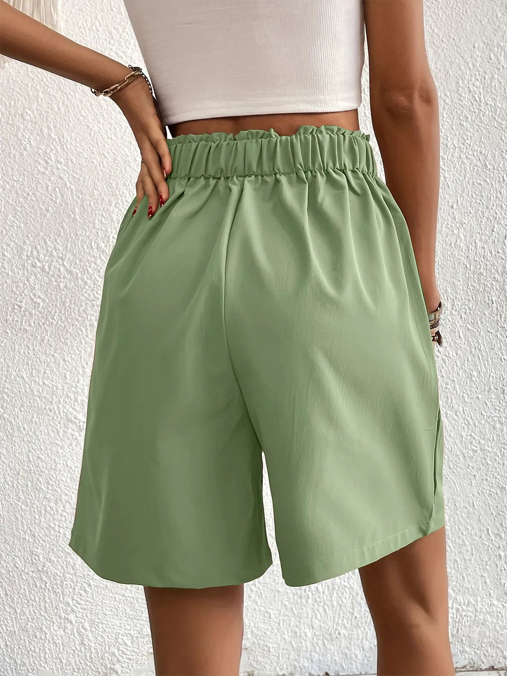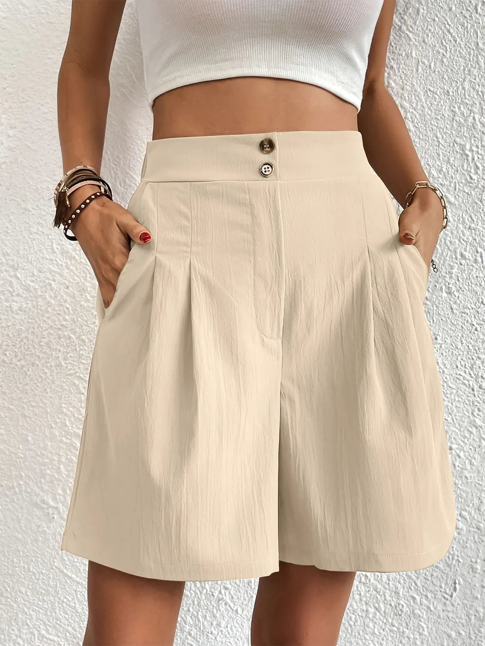 Pocketed Half Elastic Waist Shorts