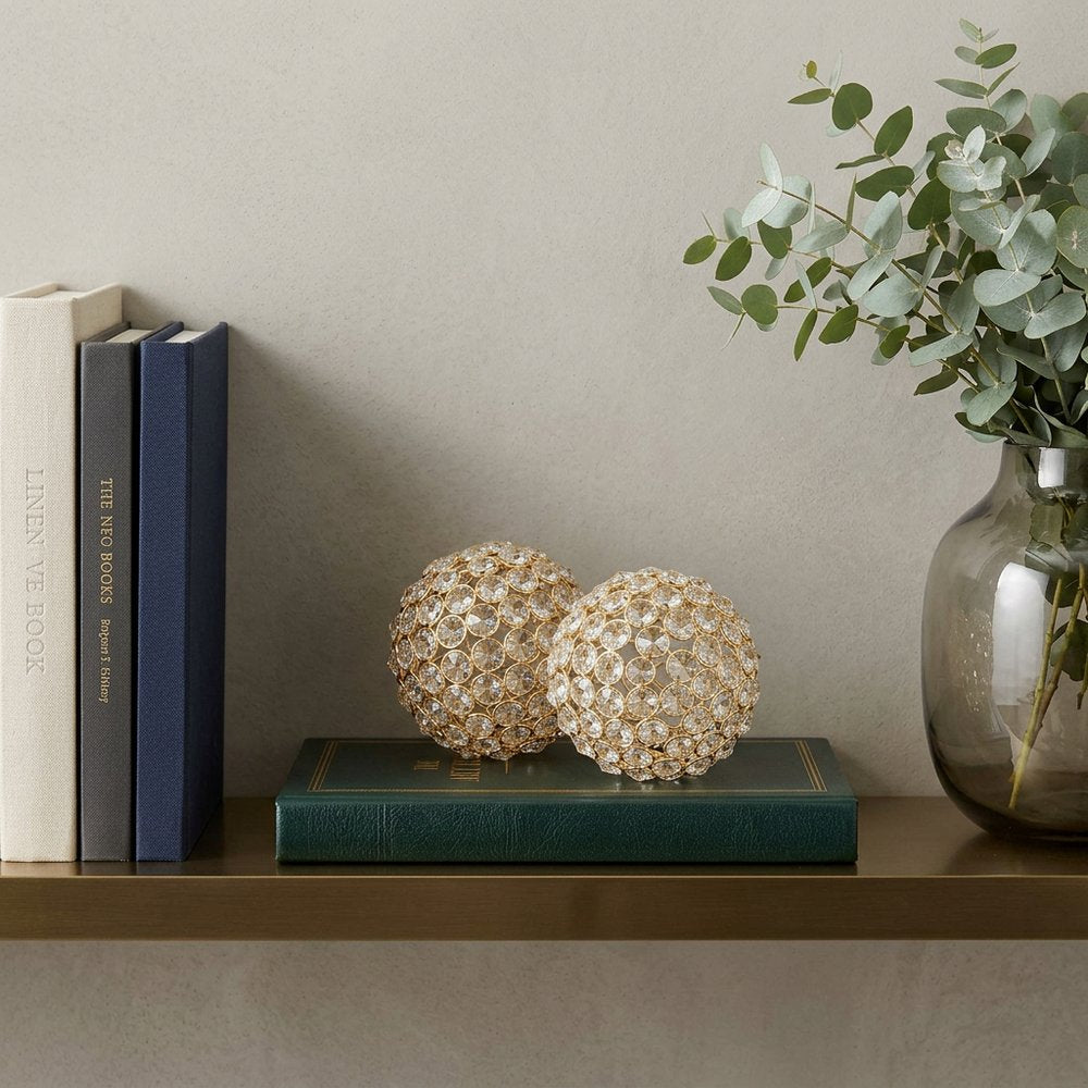 The Facetas 4" Cristal Sphere makes an elegant statement in any bowl. With a Gold Plated Frame, the many sparkling crystals accentuates this decorative sphere. Sold in a set of 2, this sphere is a beautiful addition to any decor.