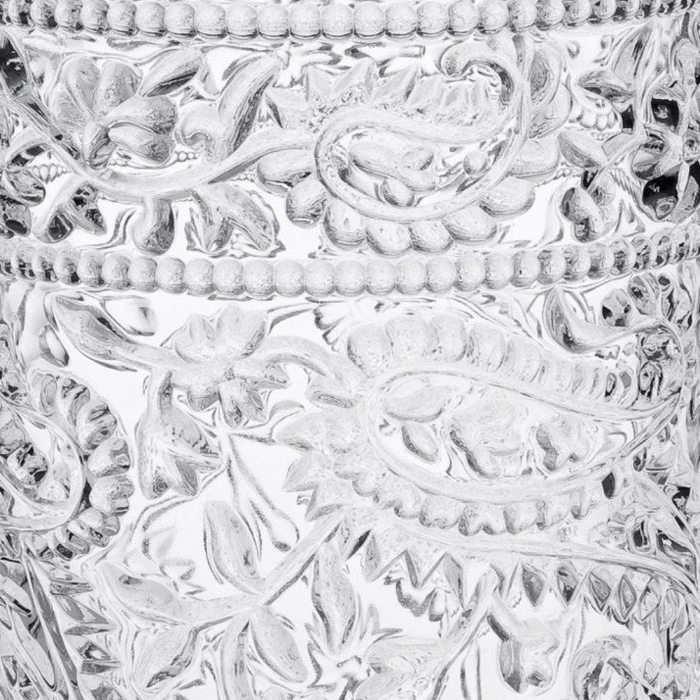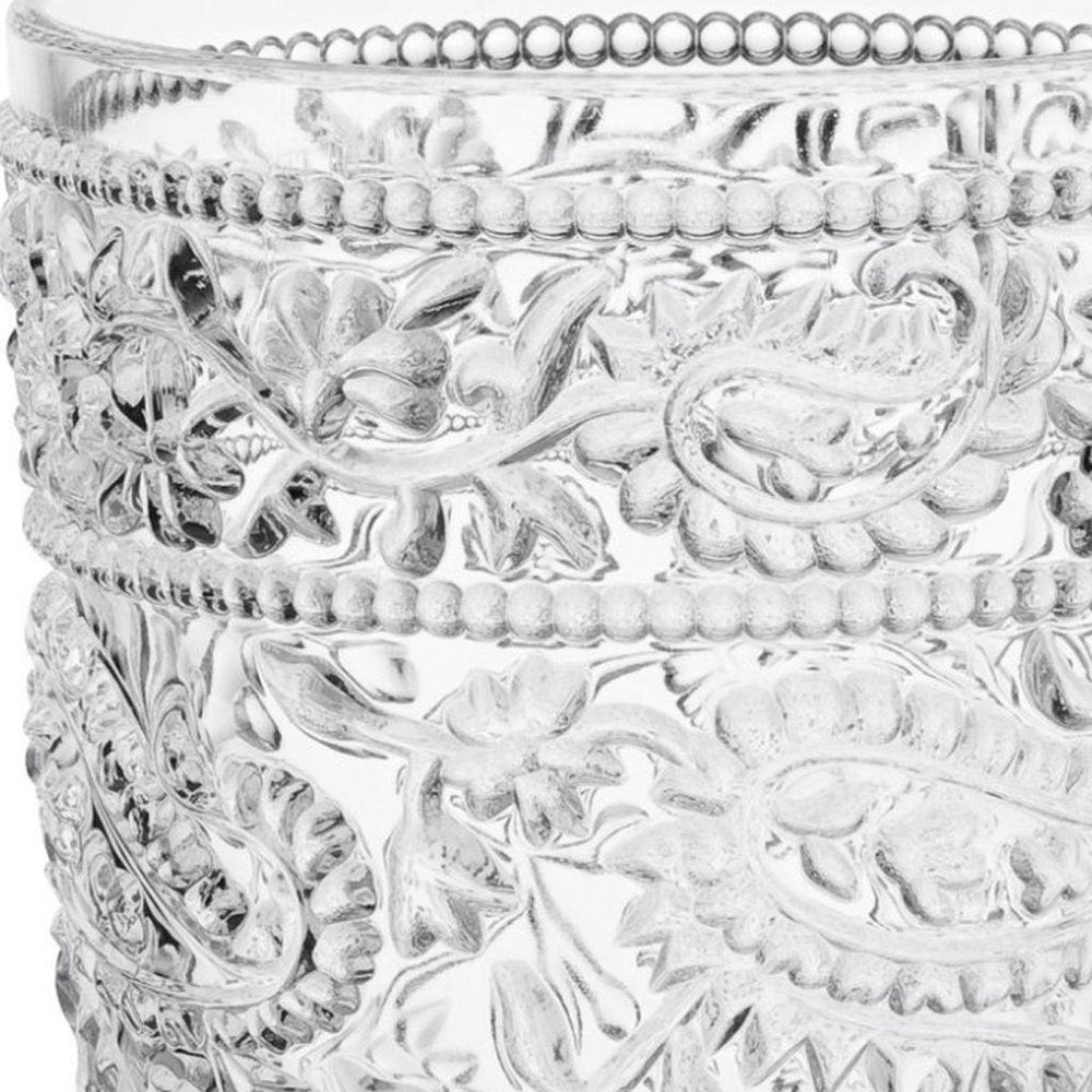Indulge in your preferred drinks with this set of four clear paisley acrylic stemless highball glass . Great for cocktails, but also ideal for everyday drinks including water. Whether you are entertaining or simply enjoying a drink by yourself, a quality set of stemware is a must-have. Whether you prefer a simple or complex flavor profile, stemless glasses offer the perfect vessel to savor every sip. The addition of a machine embossed design gives this glass special character and dimension. Add iconic style to your setting with this good looking paisley pattern. The textured surface gives this a unique and dimensional feel. Every drink deserves the perfect glass, and so do you. 6-inch H x 3.38-inch W x 3.38-inch D
